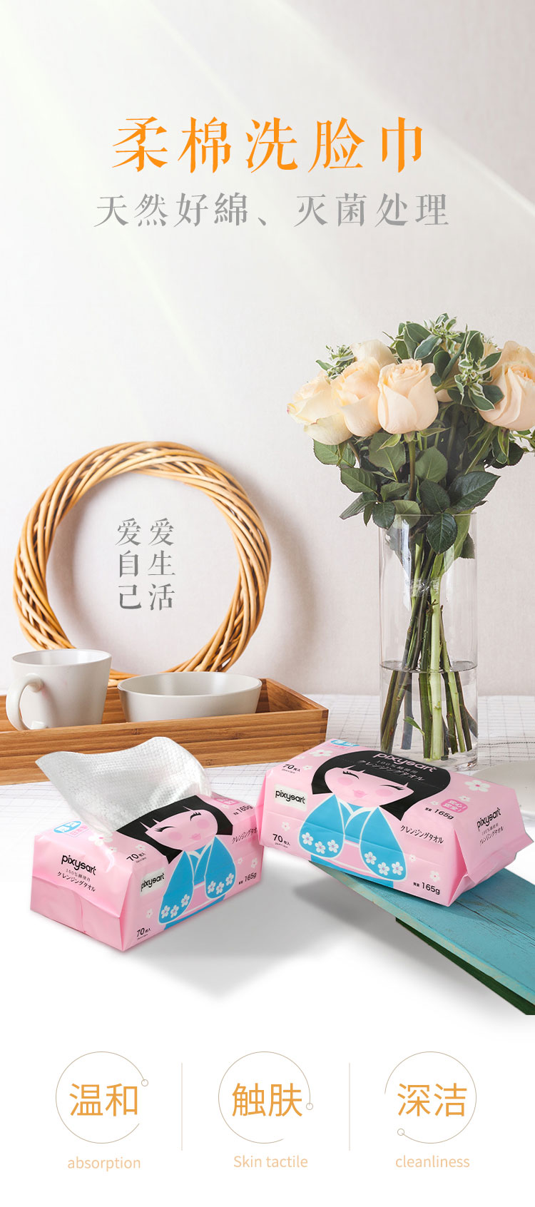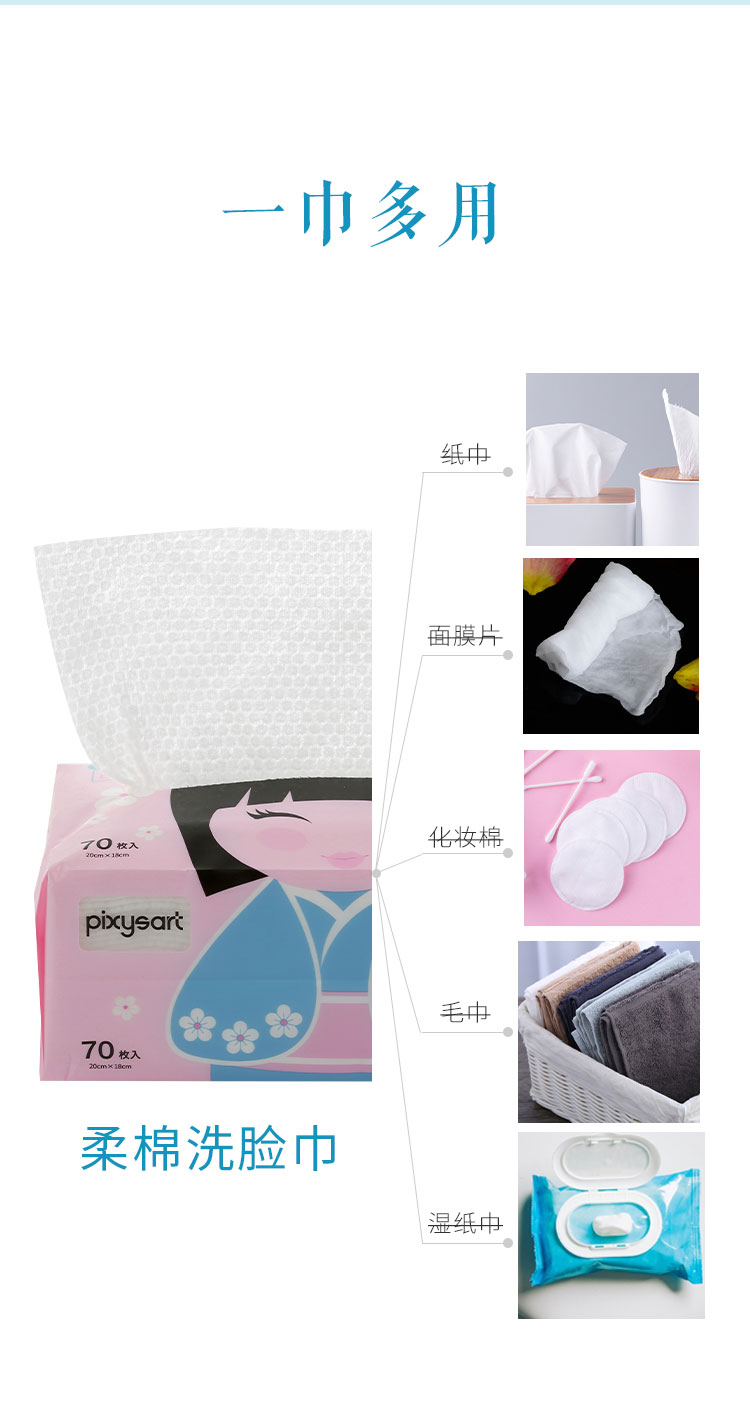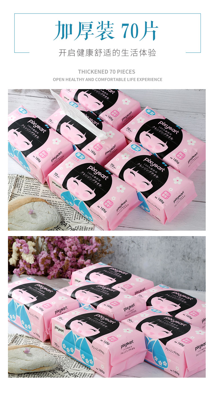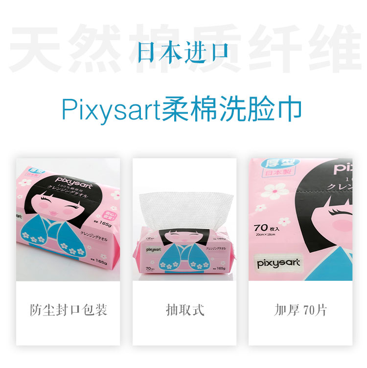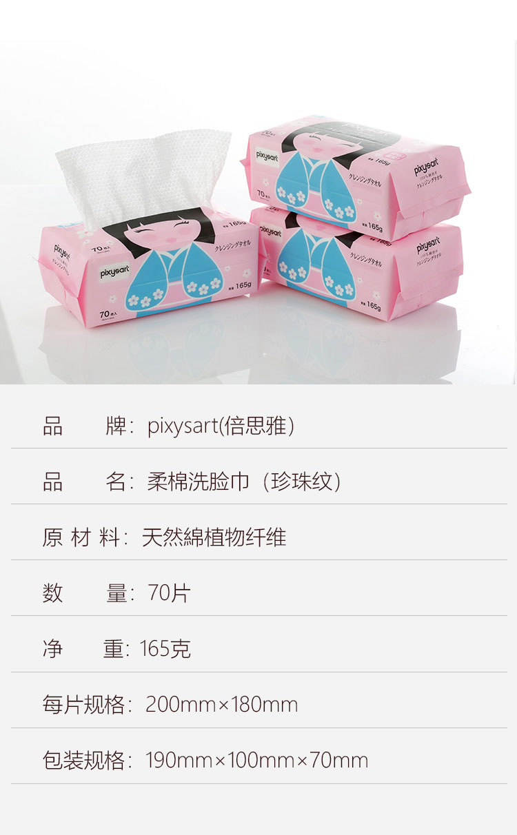 日本进口Pixysart倍思雅珍珠纹柔棉洗脸巾 70片/包