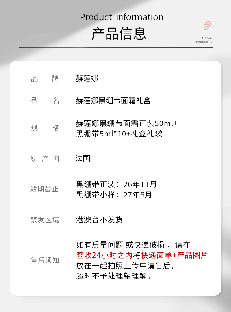 【限定福利】HR/赫莲娜黑绷带面霜(正装50ml+小样5ml*10)赠礼盒礼袋