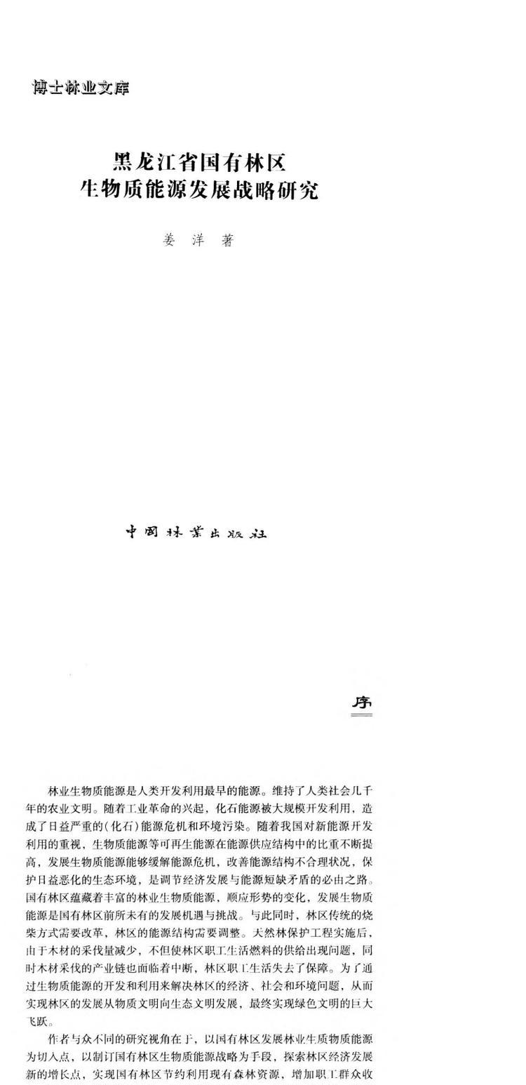 黑龙江省国有林区生物质能源发展战略研究 中国林业出版社6128