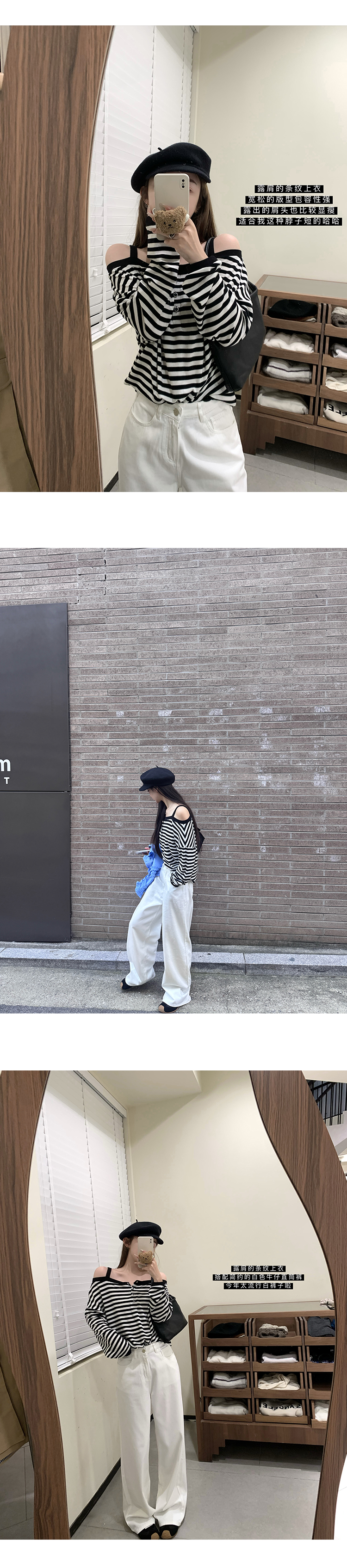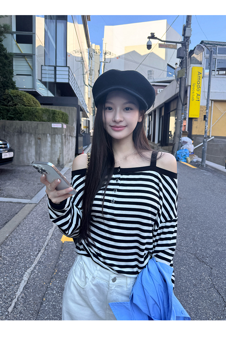Read Nameless/微胖必备 显瘦露肩条纹上衣 2025/9/25