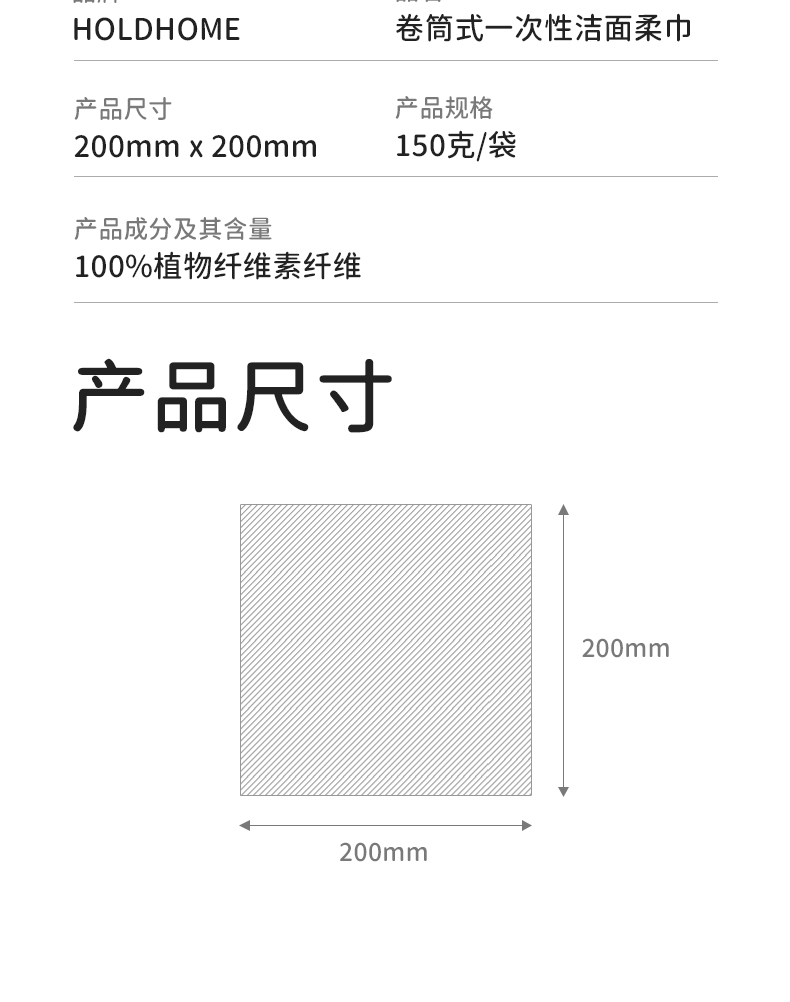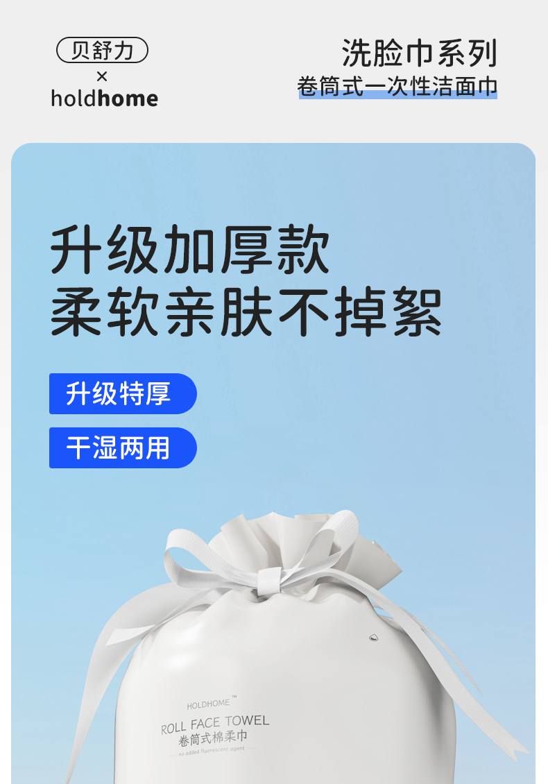 【HOLDHOME 半宅日记 柔软亲肤卷筒洗脸巾】150克/1卷,1卷大概36-38抽,升级加厚,干湿两用,真材实料,宝宝也可用!