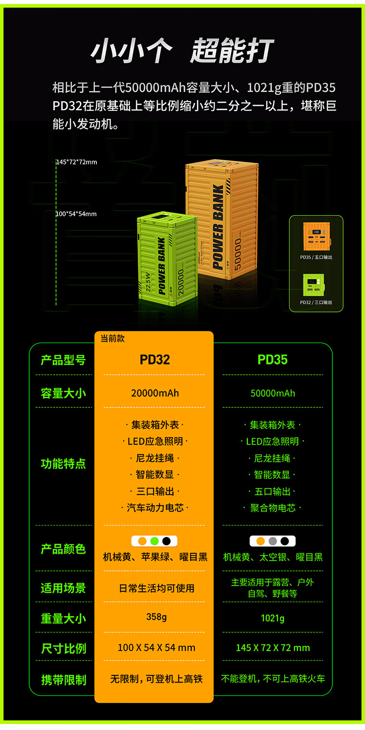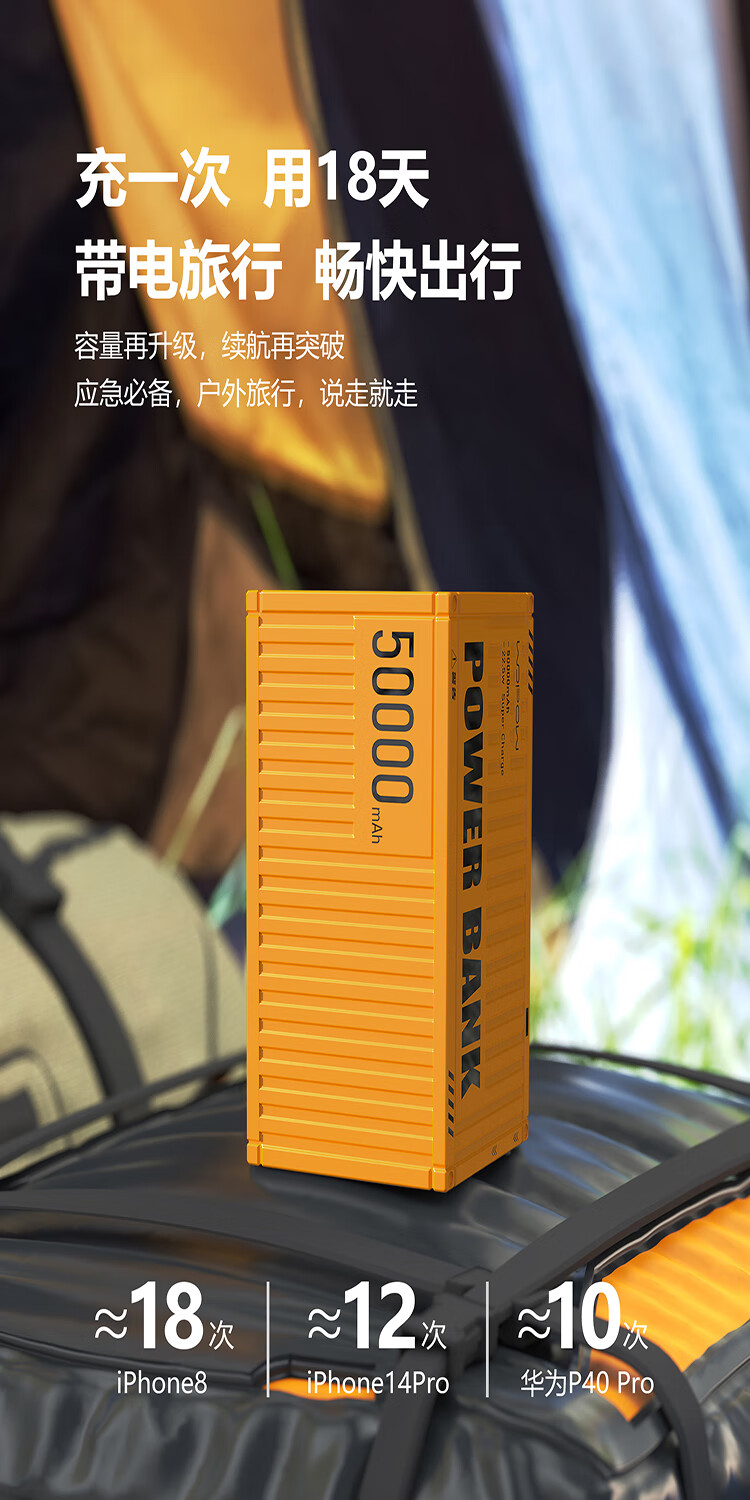 沃品 充电宝 22.5W超级快充 50000毫安超大容量 PD35