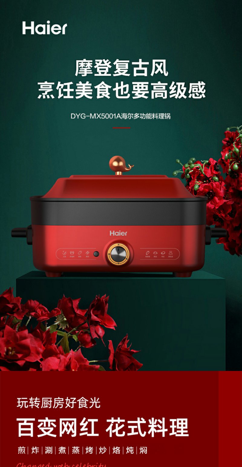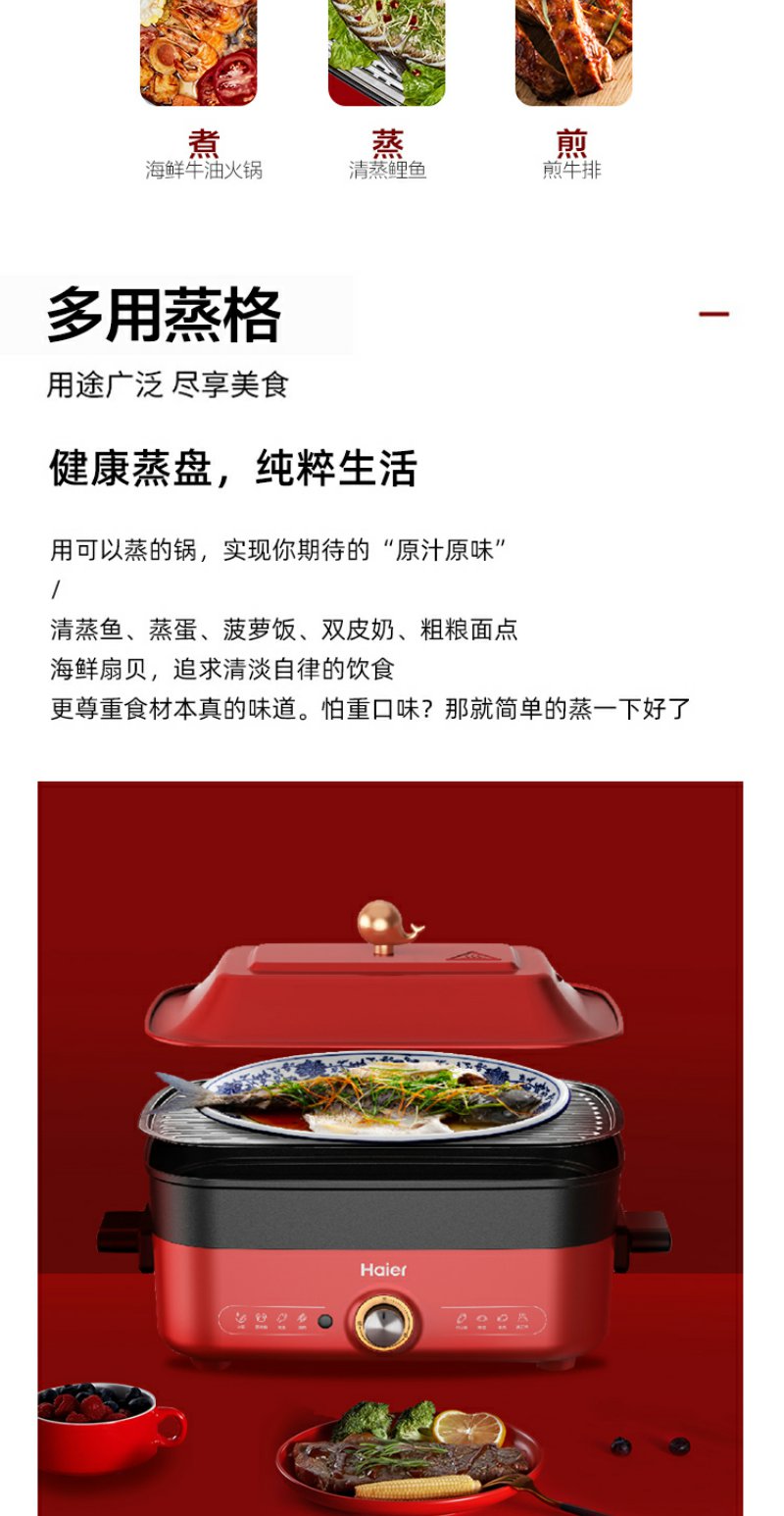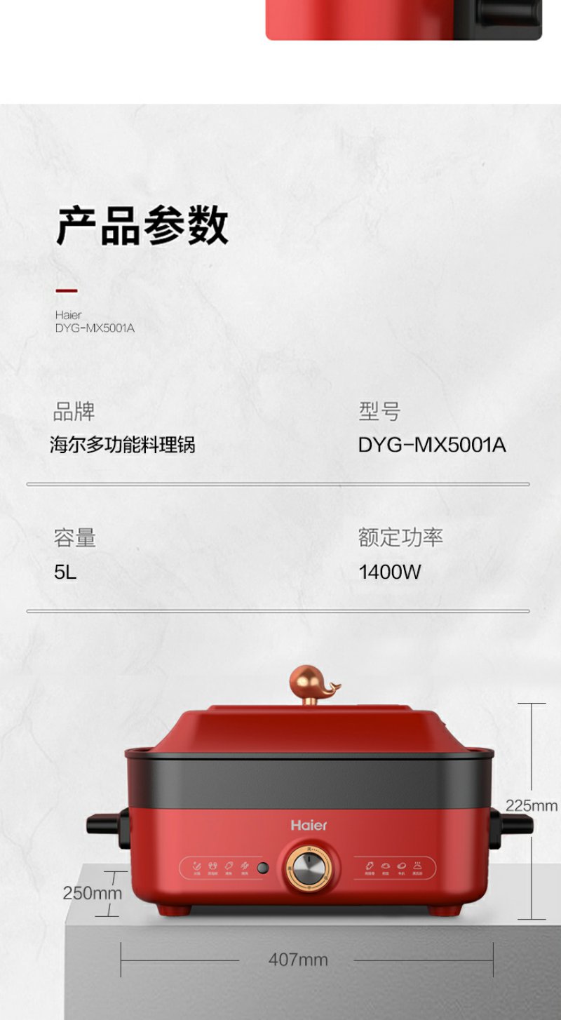 海尔 料理锅 5L 家用大容量多功能料理锅 DYG-MX5001A