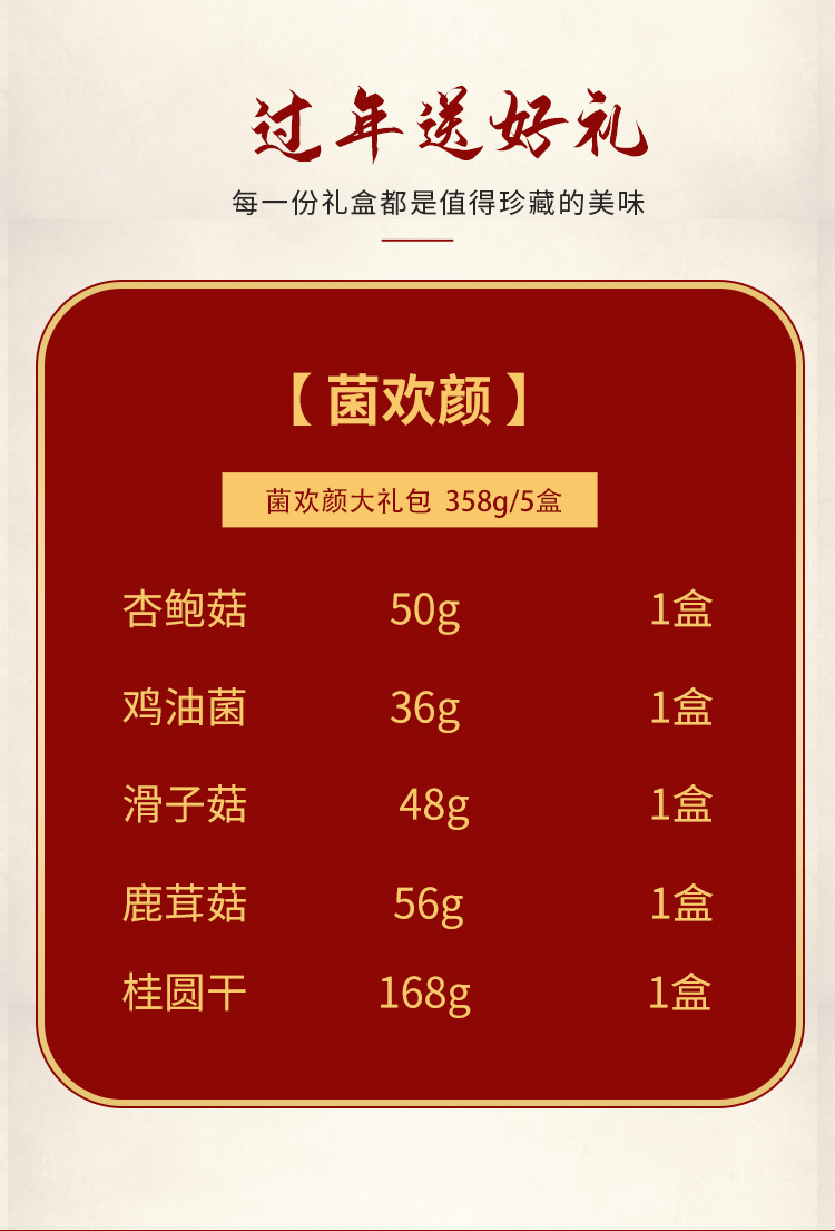 优选丨鲜珥家 好运多多山珍礼盒/菌欢颜菌菇礼盒 新鲜采摘到自然干制而成,保留菌菇的鲜美醇香,自然好山珍,看得到真材实料,送礼佳品