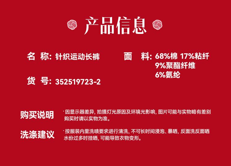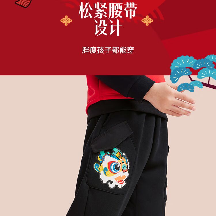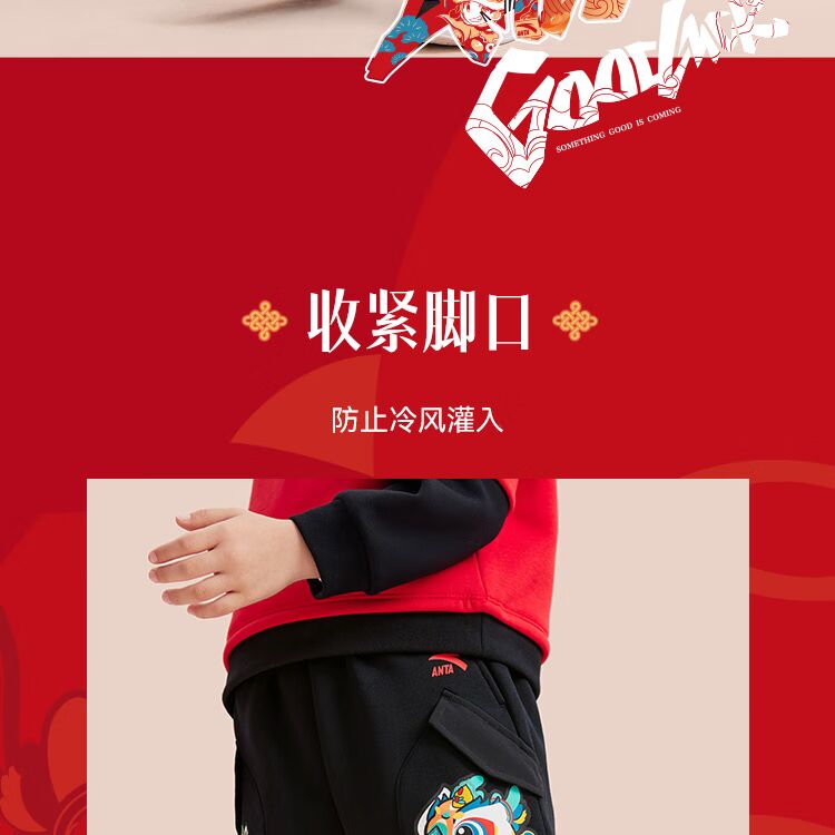 安踏儿童裤子男小童2025年春保暖新年针织运动长裤352519723N
