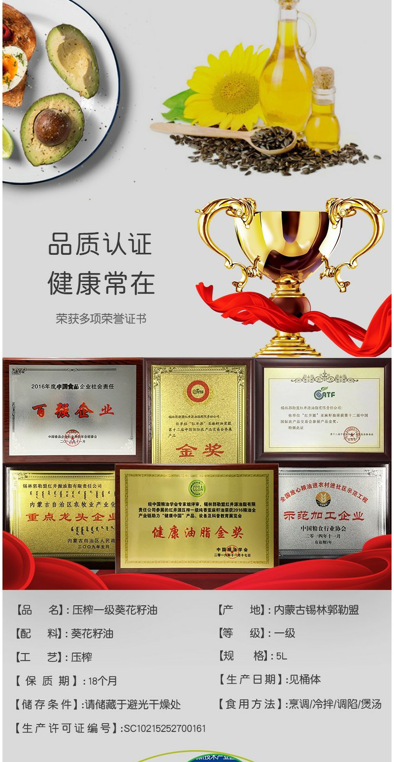 专享套餐:红井源葵花籽油5L+京蒙壹心旱地小麦粉5kg