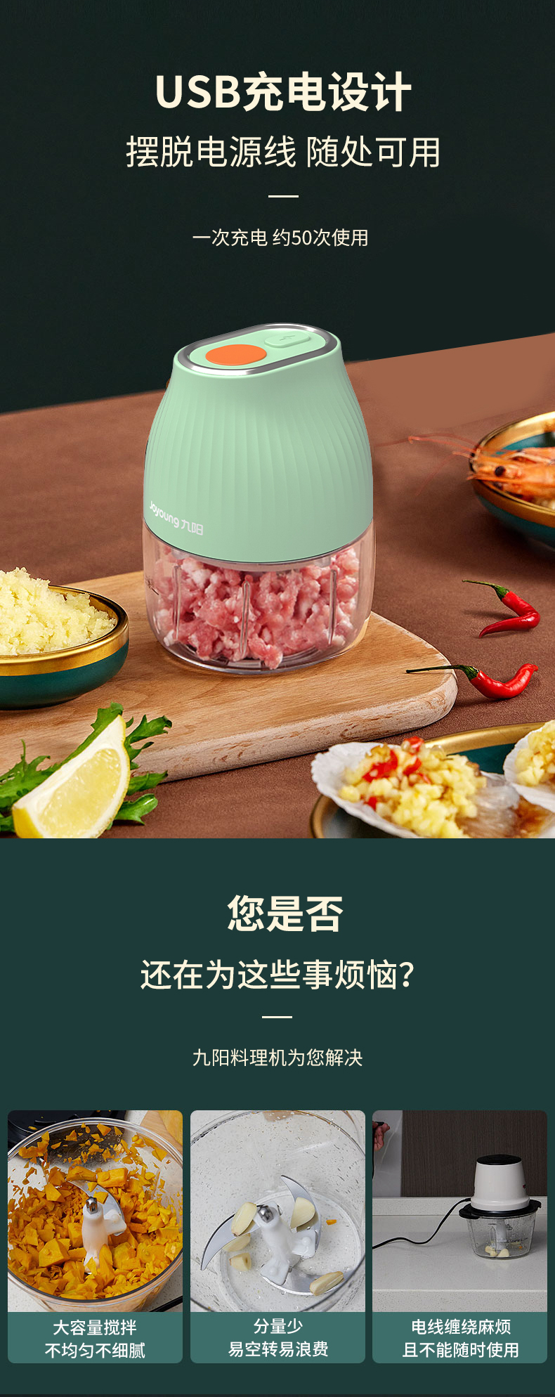 九阳 电动捣蒜器 130ml 迷你搅碎机 CF-AS0399