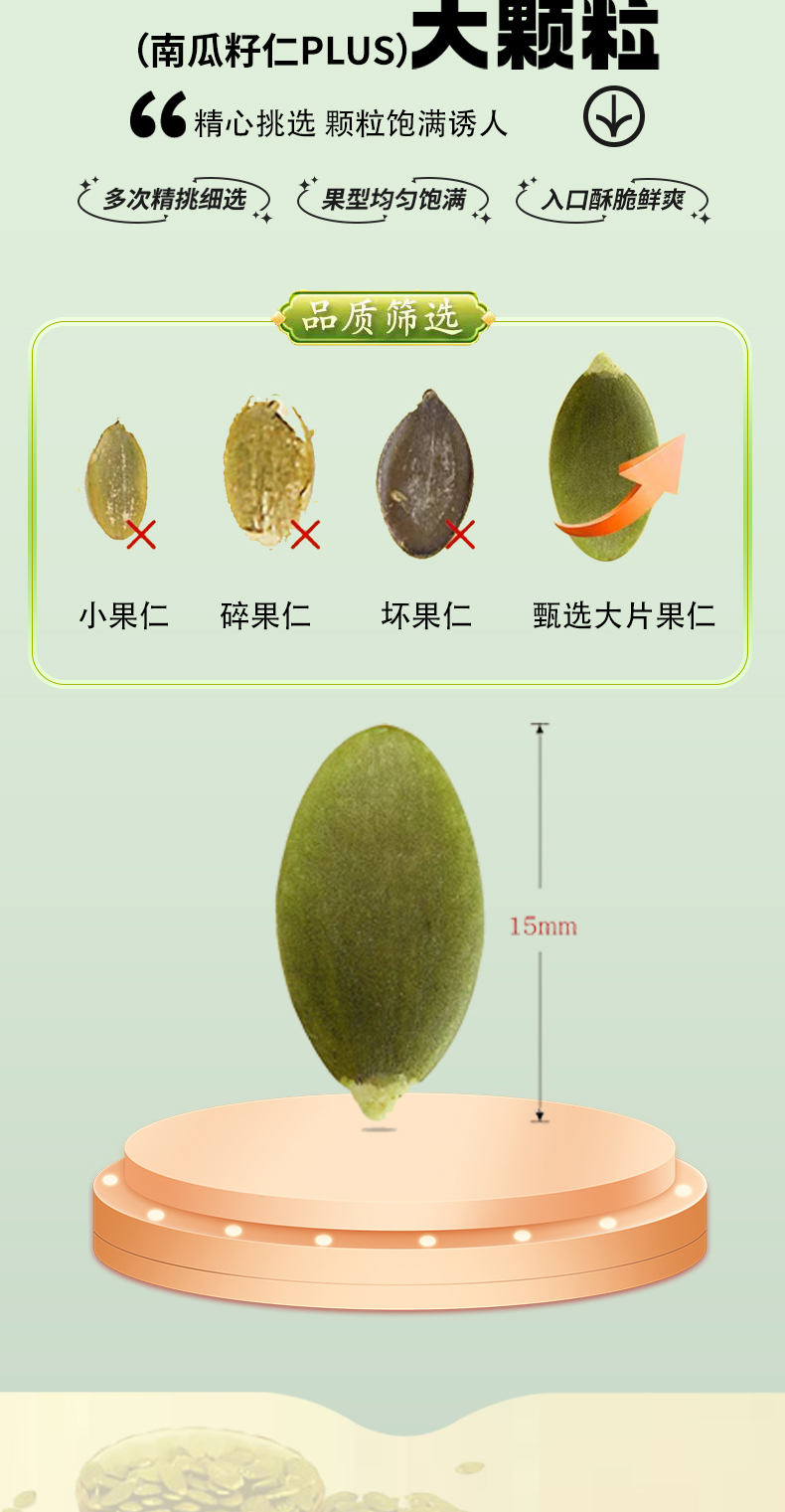 2、生南瓜子仁营养丰富,充分补充营养和能量 ;