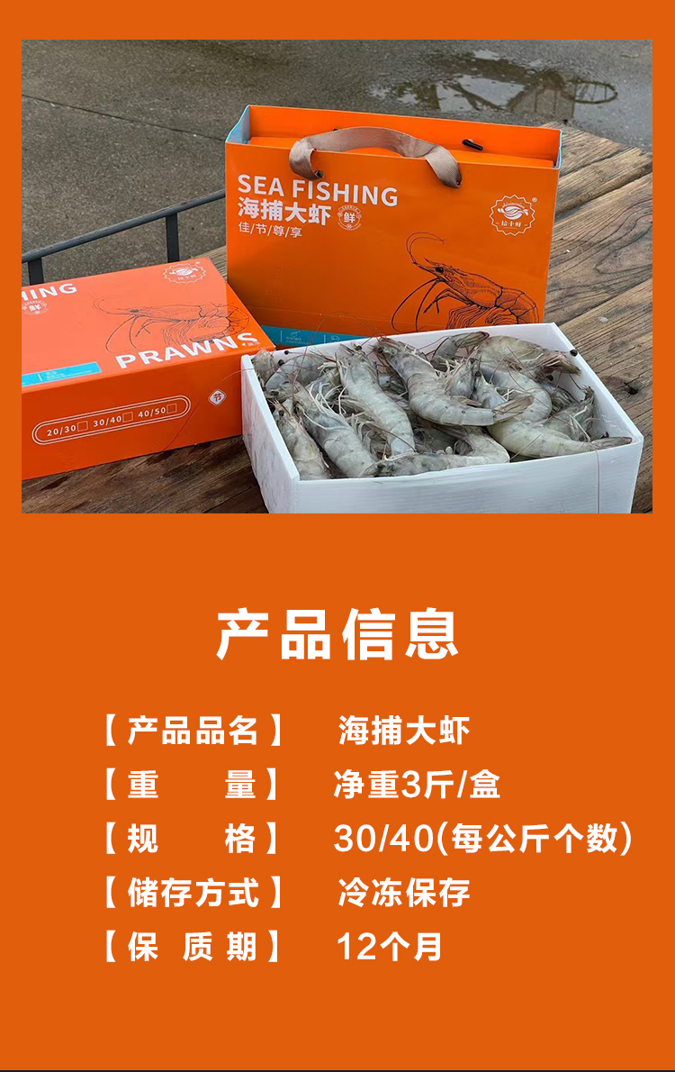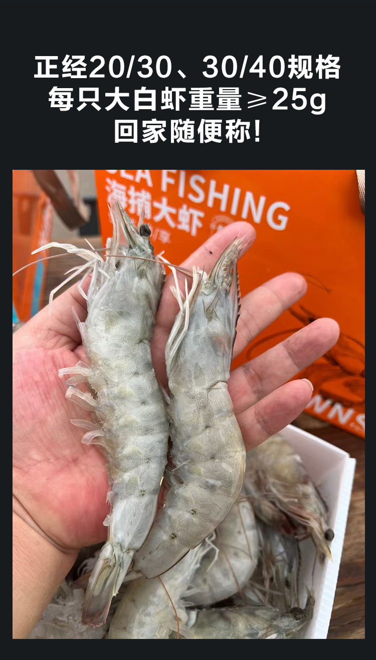 南美白虾海捕大虾 虾肉饱满 肉质鲜嫩 爽滑弹牙 30-40头/3斤/盒