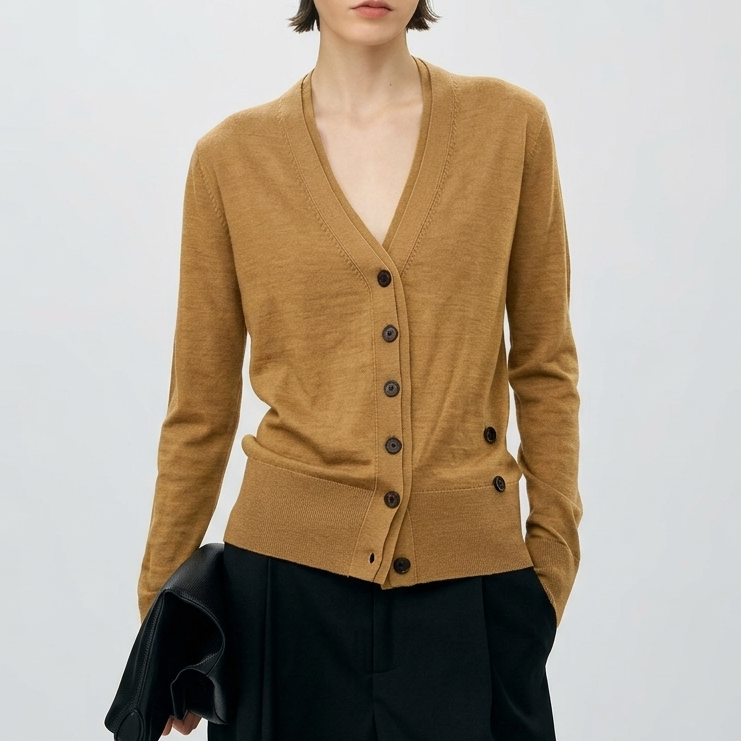 多穿扭扭衫~6A级白厂丝羊毛双层V领外套女慵懒开衫SYM260593