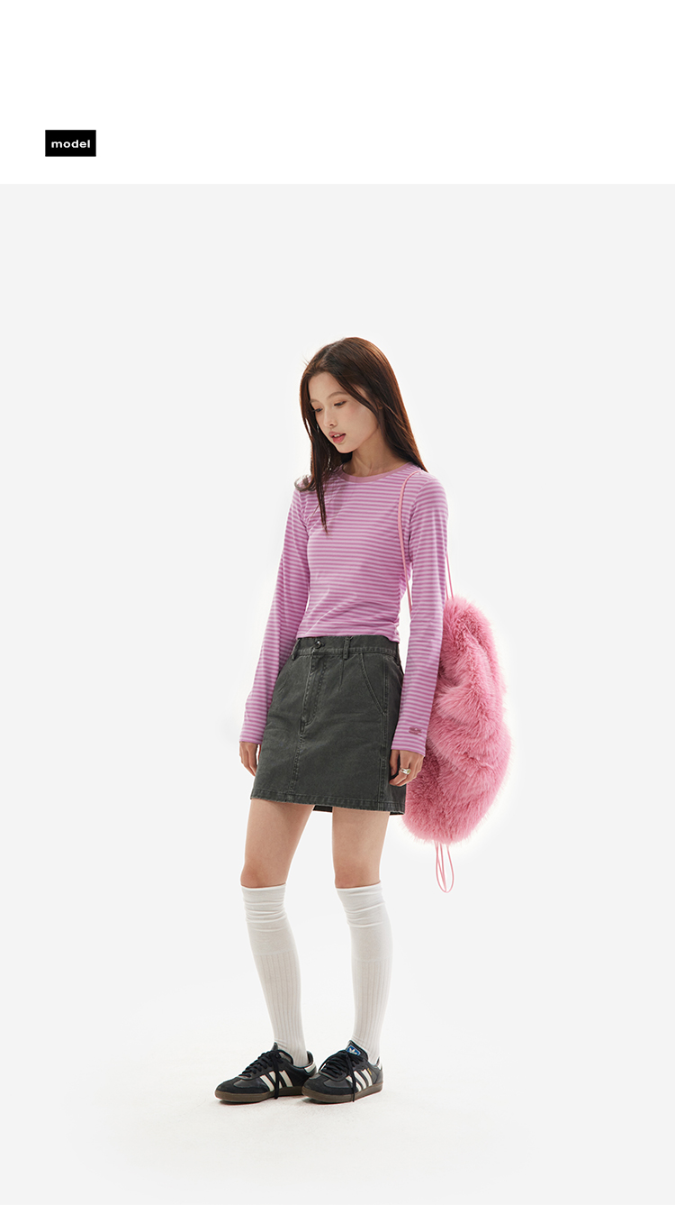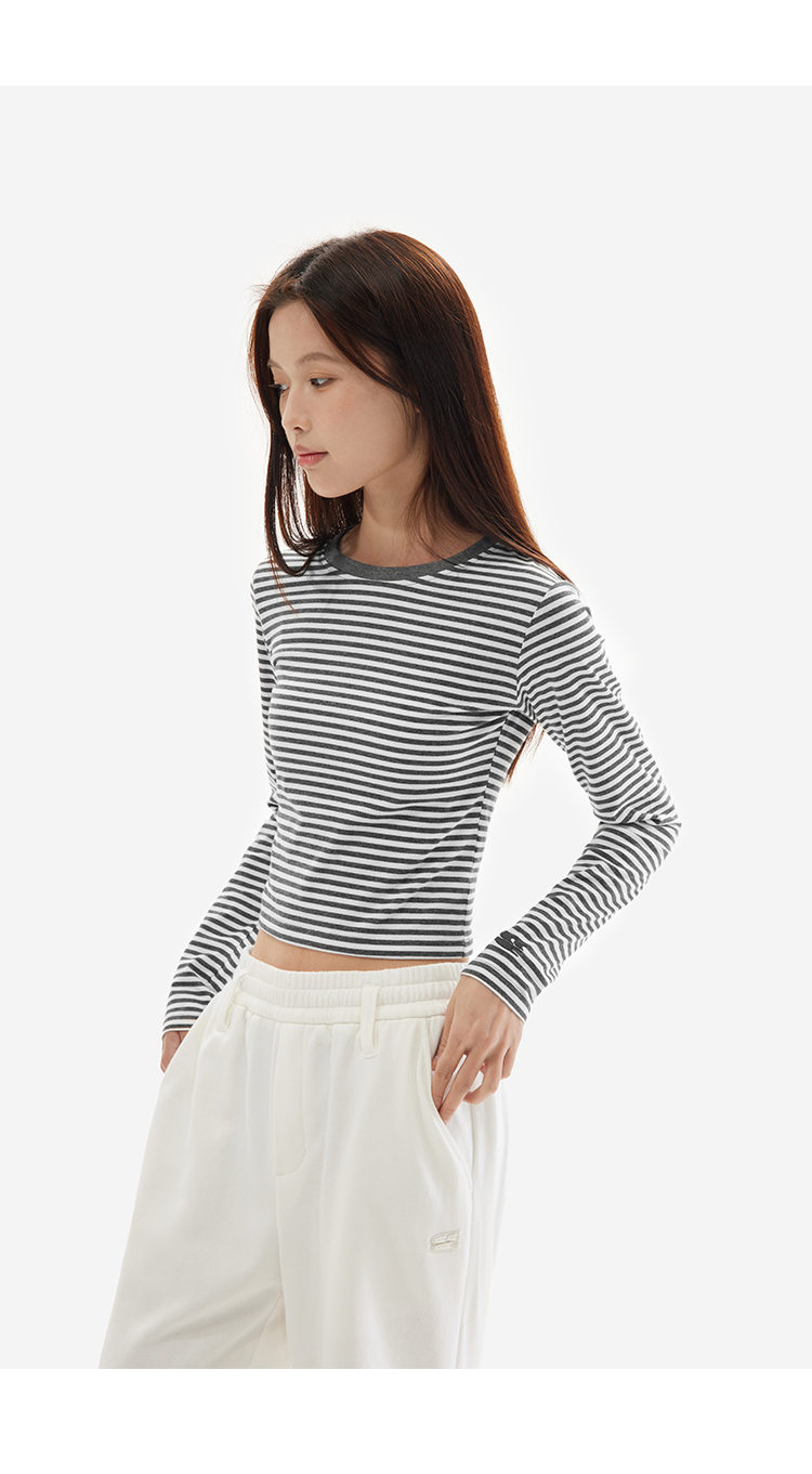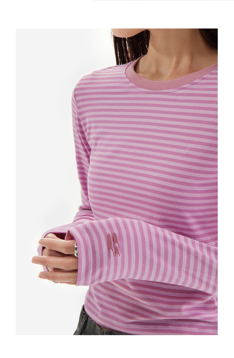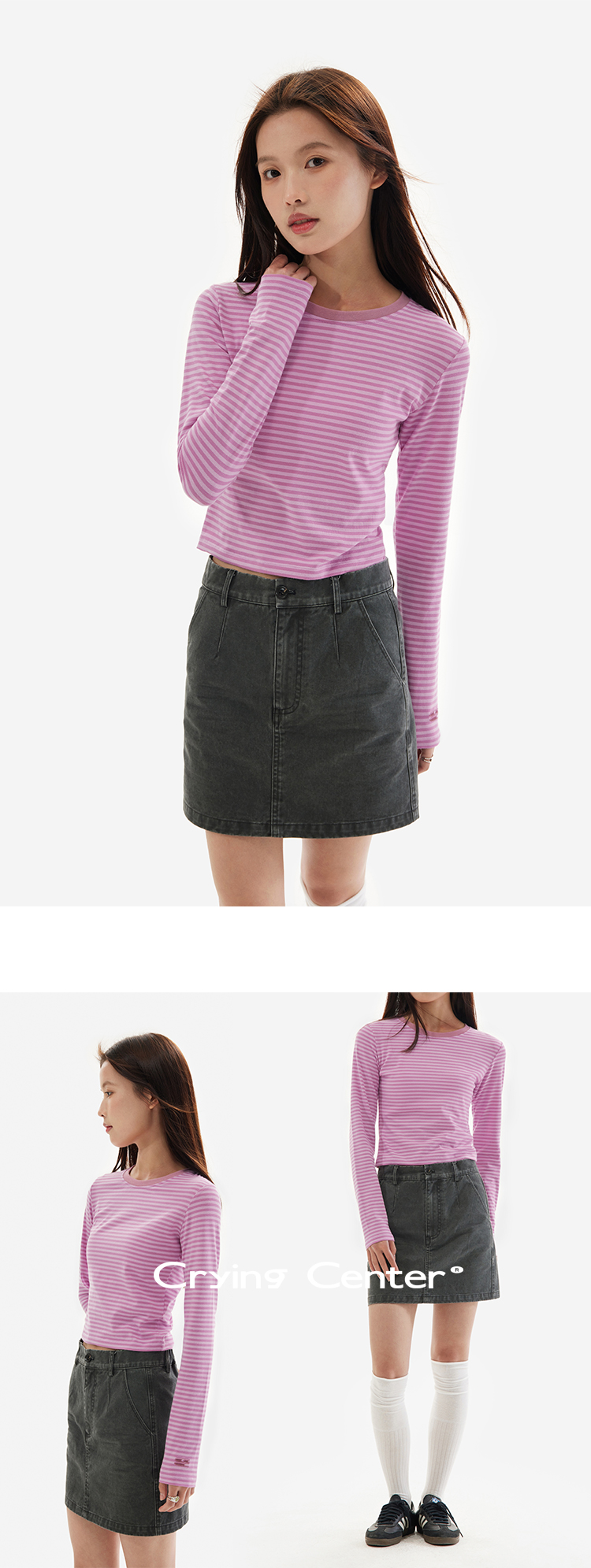 CryingCenter 灰白条芭比粉叠穿打底紧身条纹长袖tee 哭喊中心