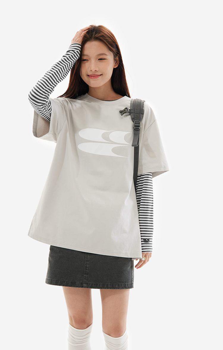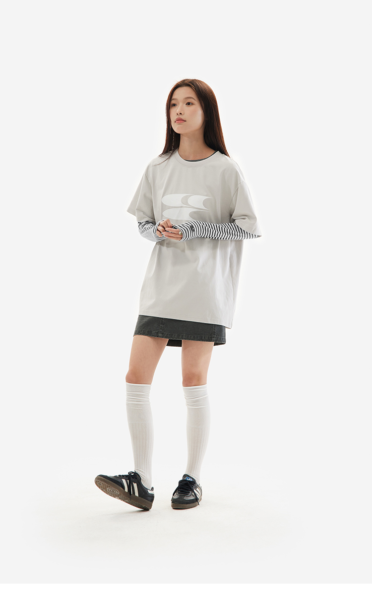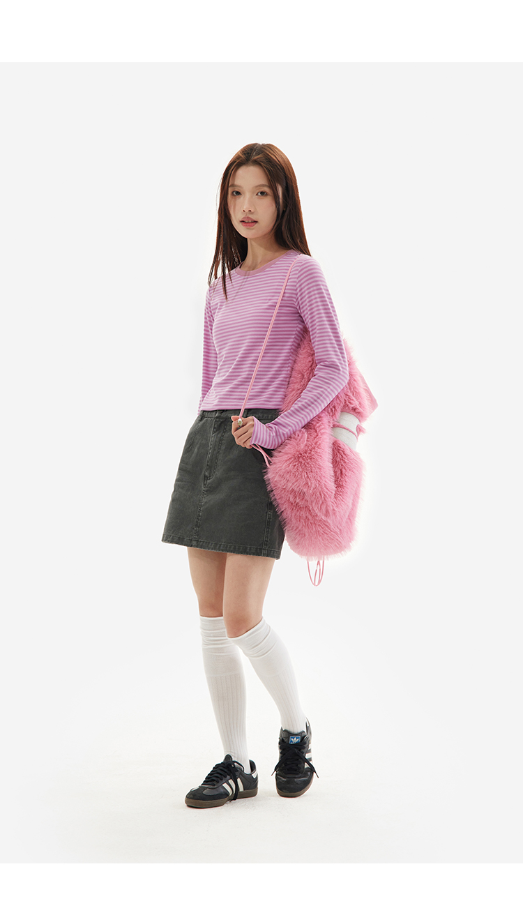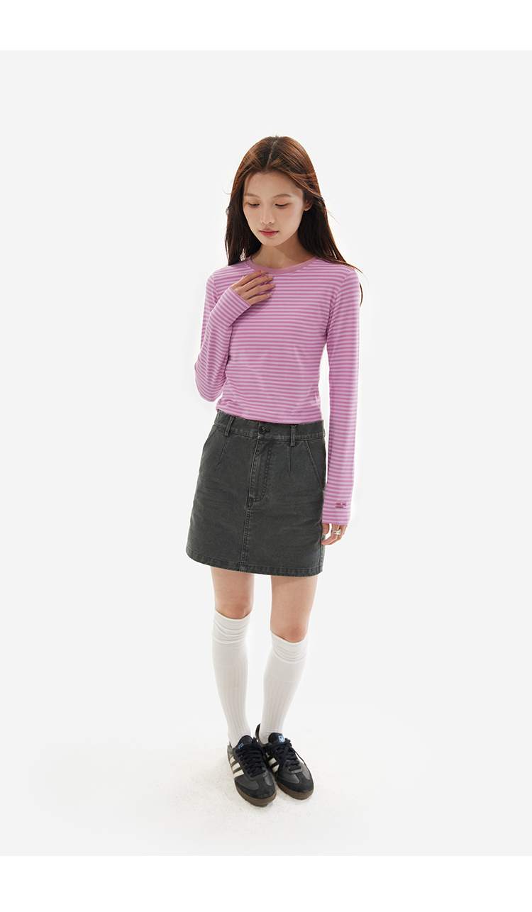 CryingCenter 灰白条芭比粉叠穿打底紧身条纹长袖tee 哭喊中心