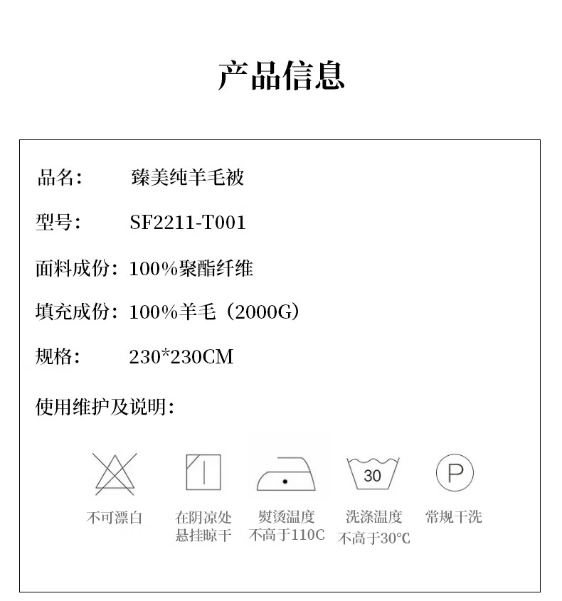 红秀世纺 臻美纯羊毛被SF2211-T001
