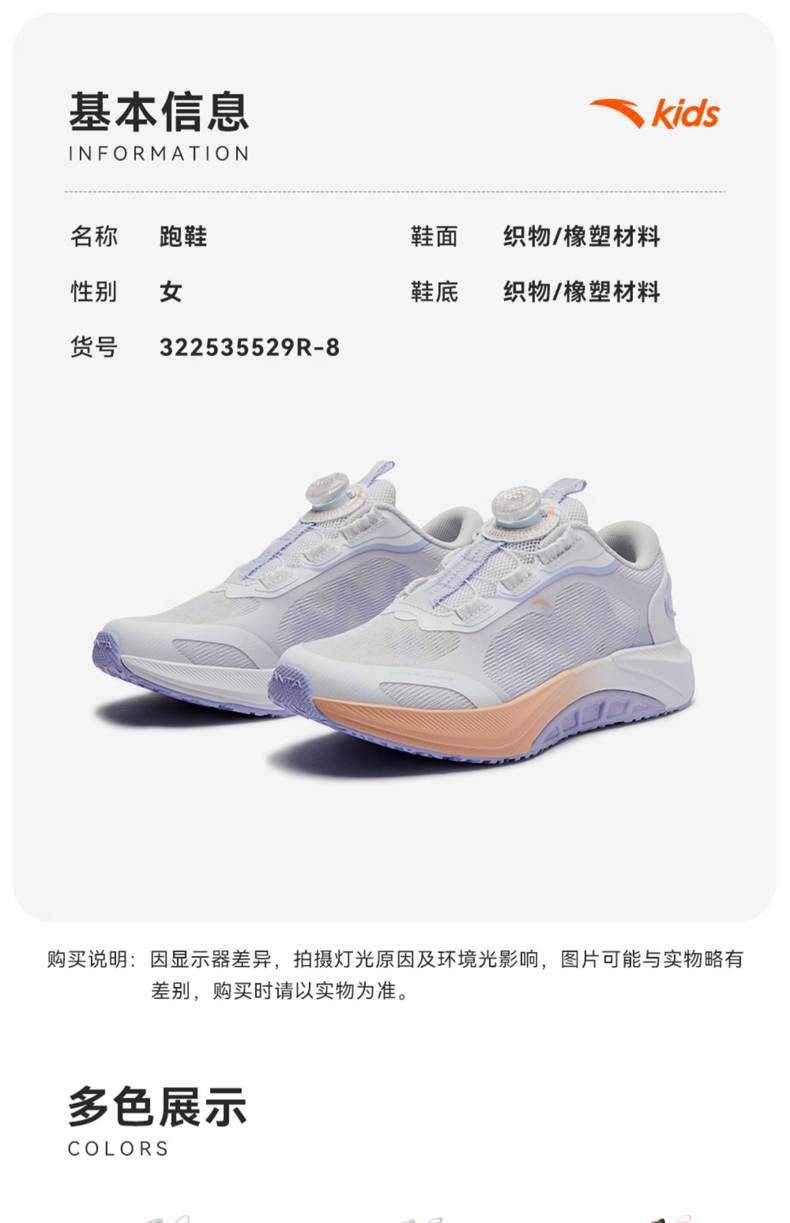 安踏儿童足弓跑鞋2025秋季新款女大童鞋子运动鞋专业跑步鞋女童鞋322535529R