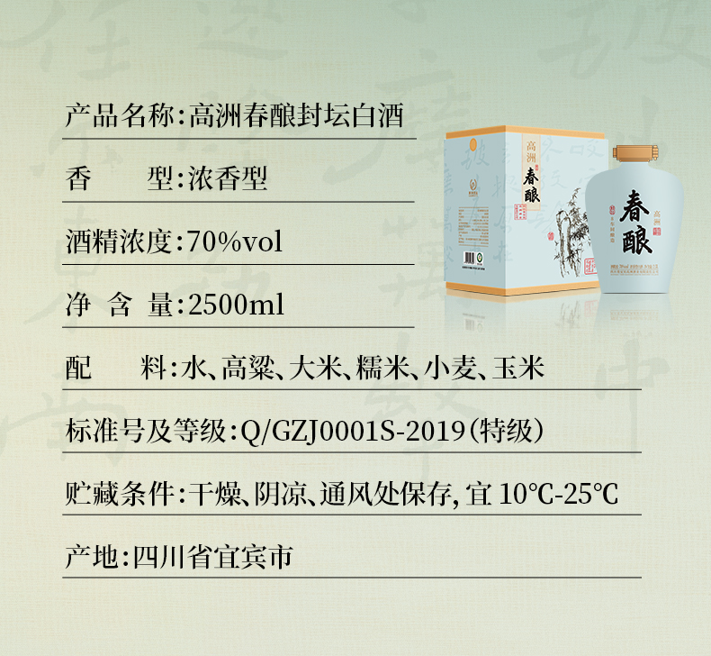 高洲酒业四十周年己巳蛇年春酿封坛原浆特级调味级酒体70度浓香型2500毫升/坛限量3000坛,一坛一编码拍一坛送250毫升品鉴装
