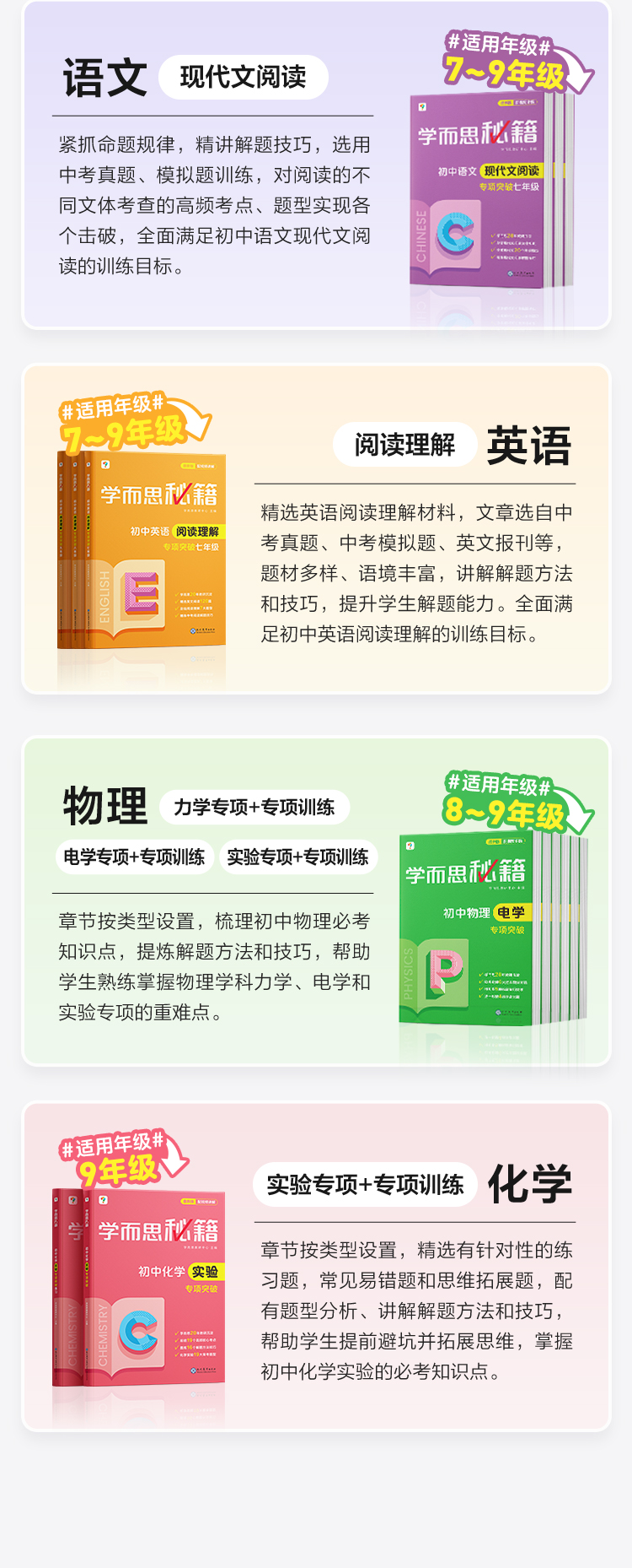 【严选推荐】【学而思秘籍初中专项突破】2023版 初中物理电学/力学/实验、化学实验、英语阅读理解、语文现代文阅读、适用初中全学段学生