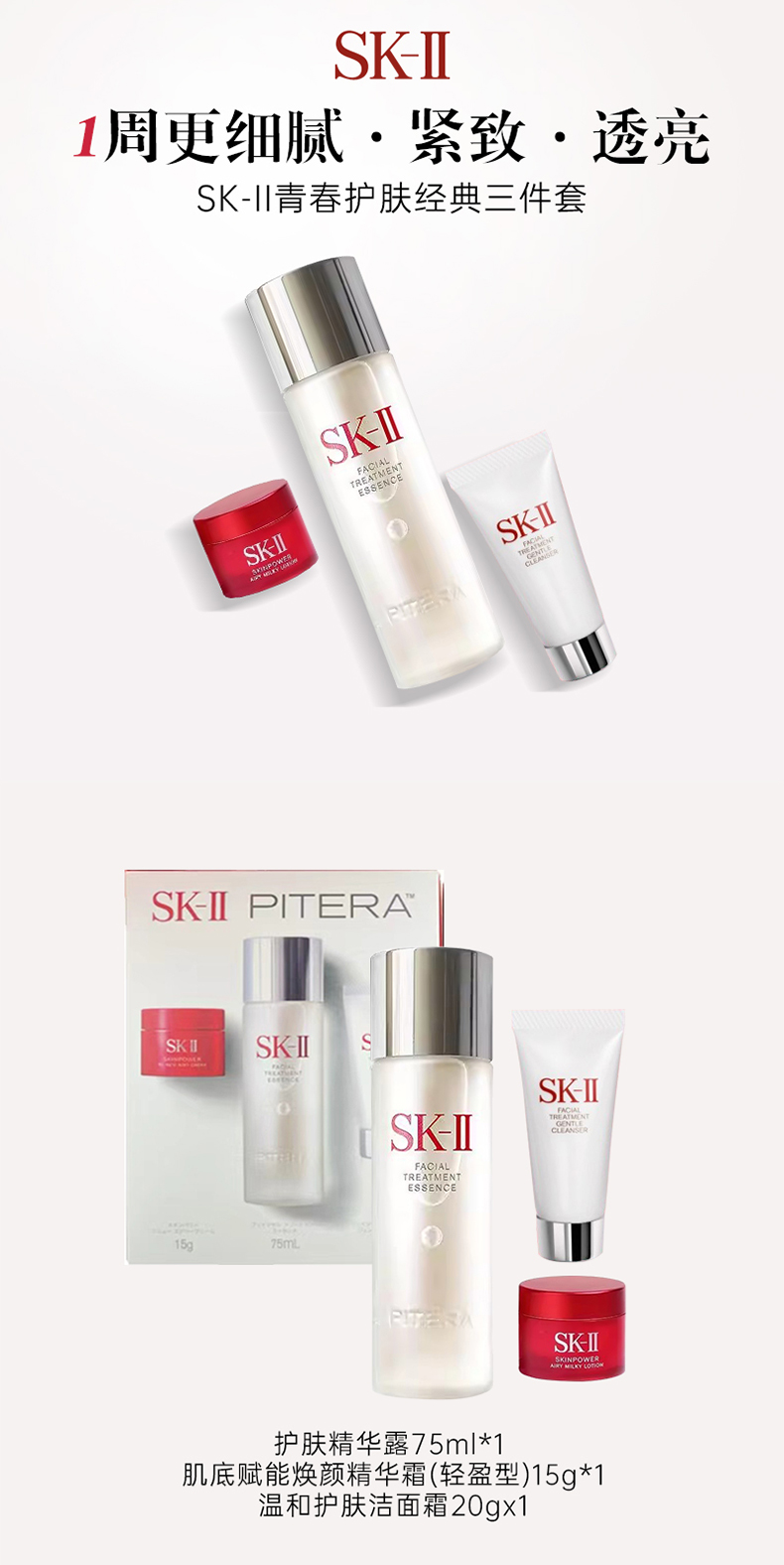 【一口价】SK-II 青春护肤经典三件套-配礼袋(神仙水75ml+大红瓶轻盈型15g+洁面20g)