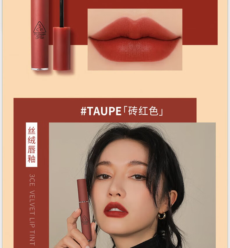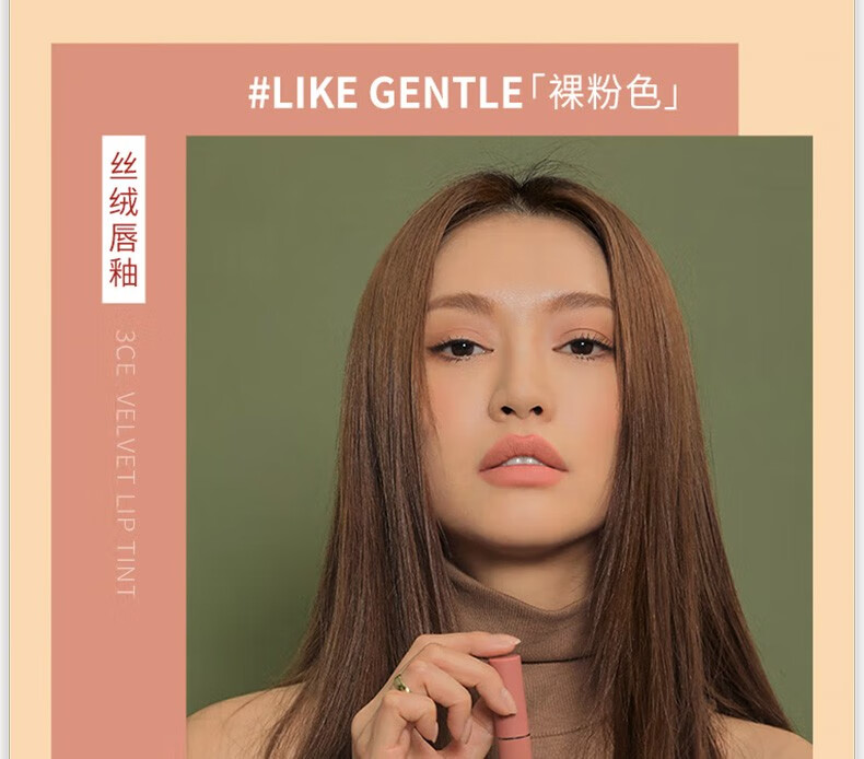 3CE 三熹玉 丝绒唇釉裸粉色LIKEGENTLE4g【2026.7】