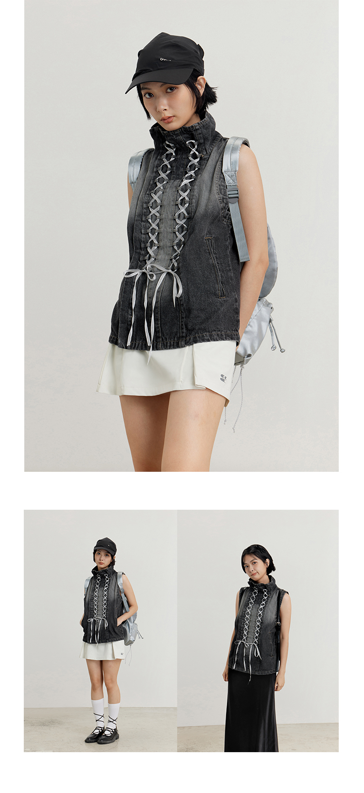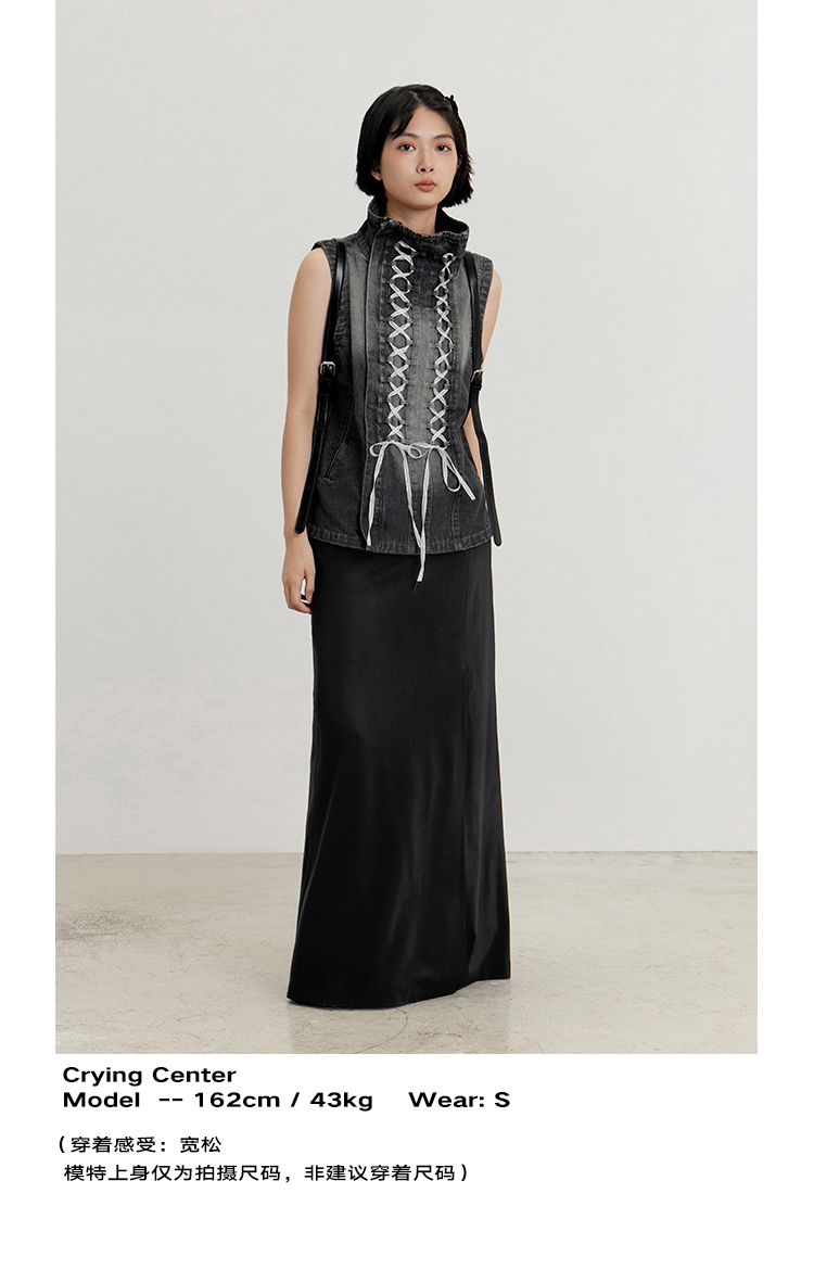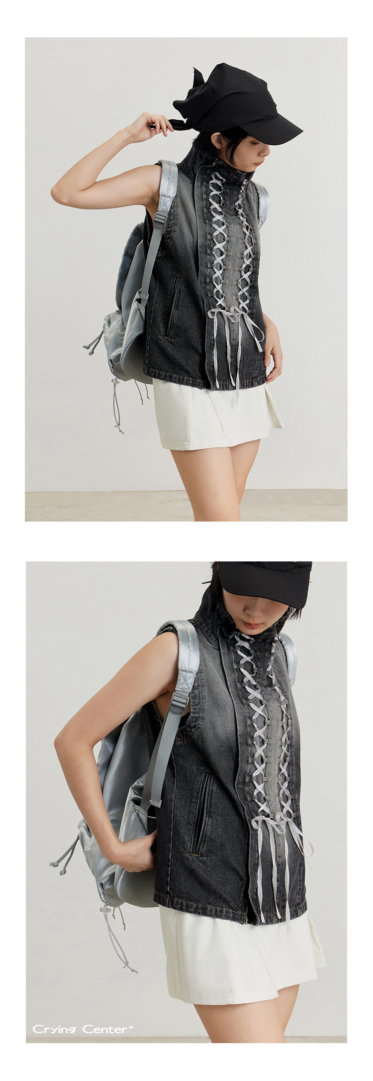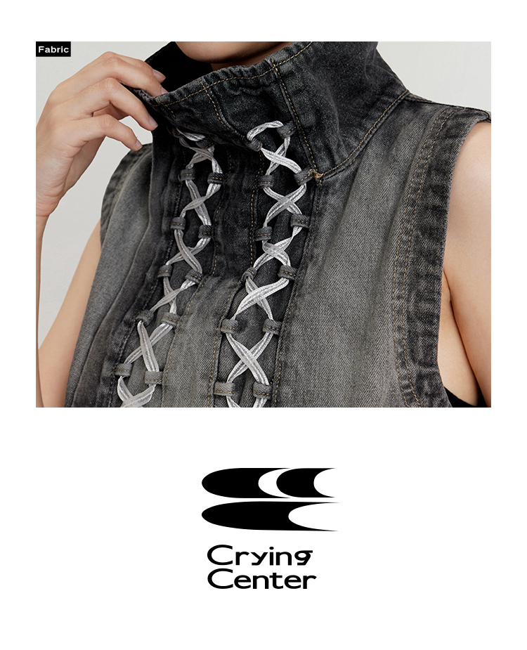 CryingCenter 做旧绑带牛仔马甲外套 朋克芭蕾千禧y2k 哭喊中心