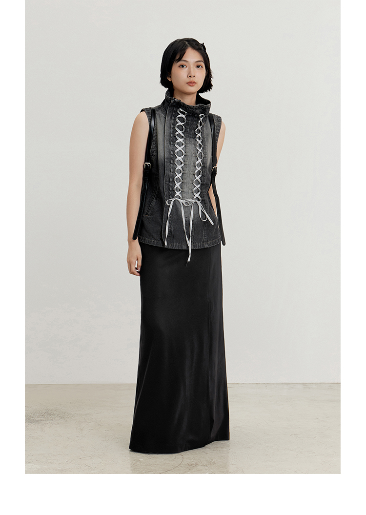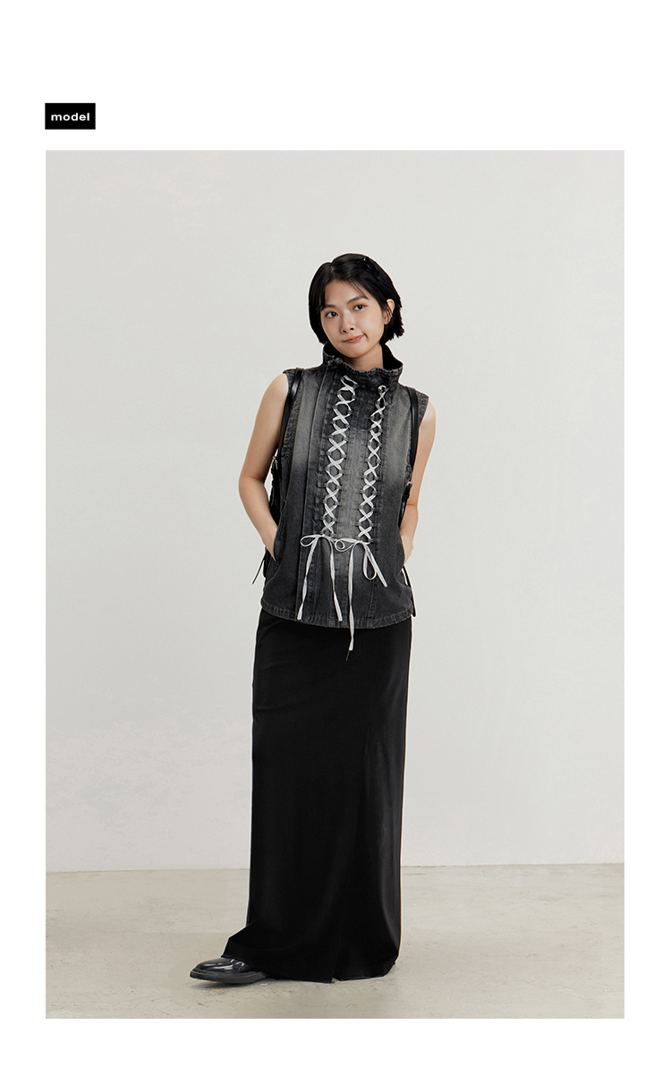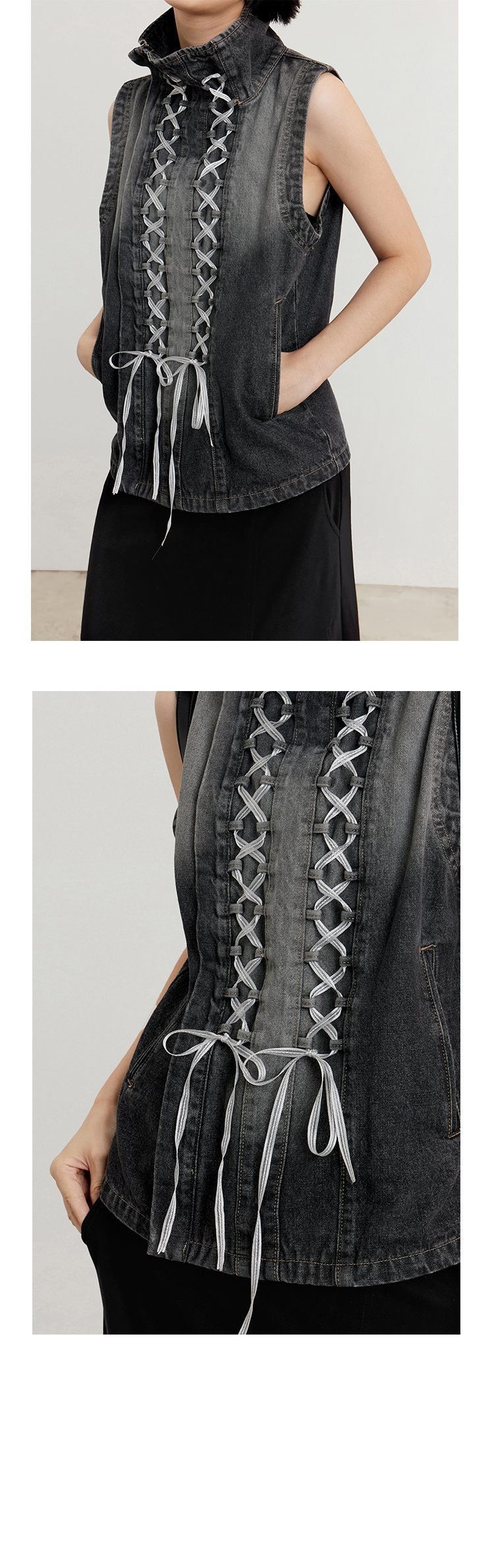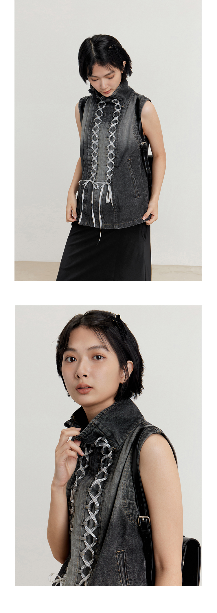 CryingCenter 做旧绑带牛仔马甲外套 朋克芭蕾千禧y2k 哭喊中心