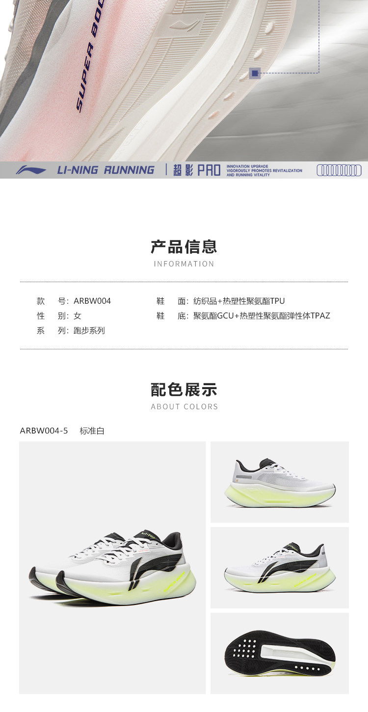 李宁 超影PRO 女款 䨻丝轻量高回弹轻质缓震跑步运动鞋