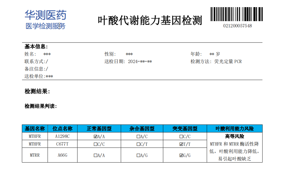 华测 叶酸代谢基因检测0521