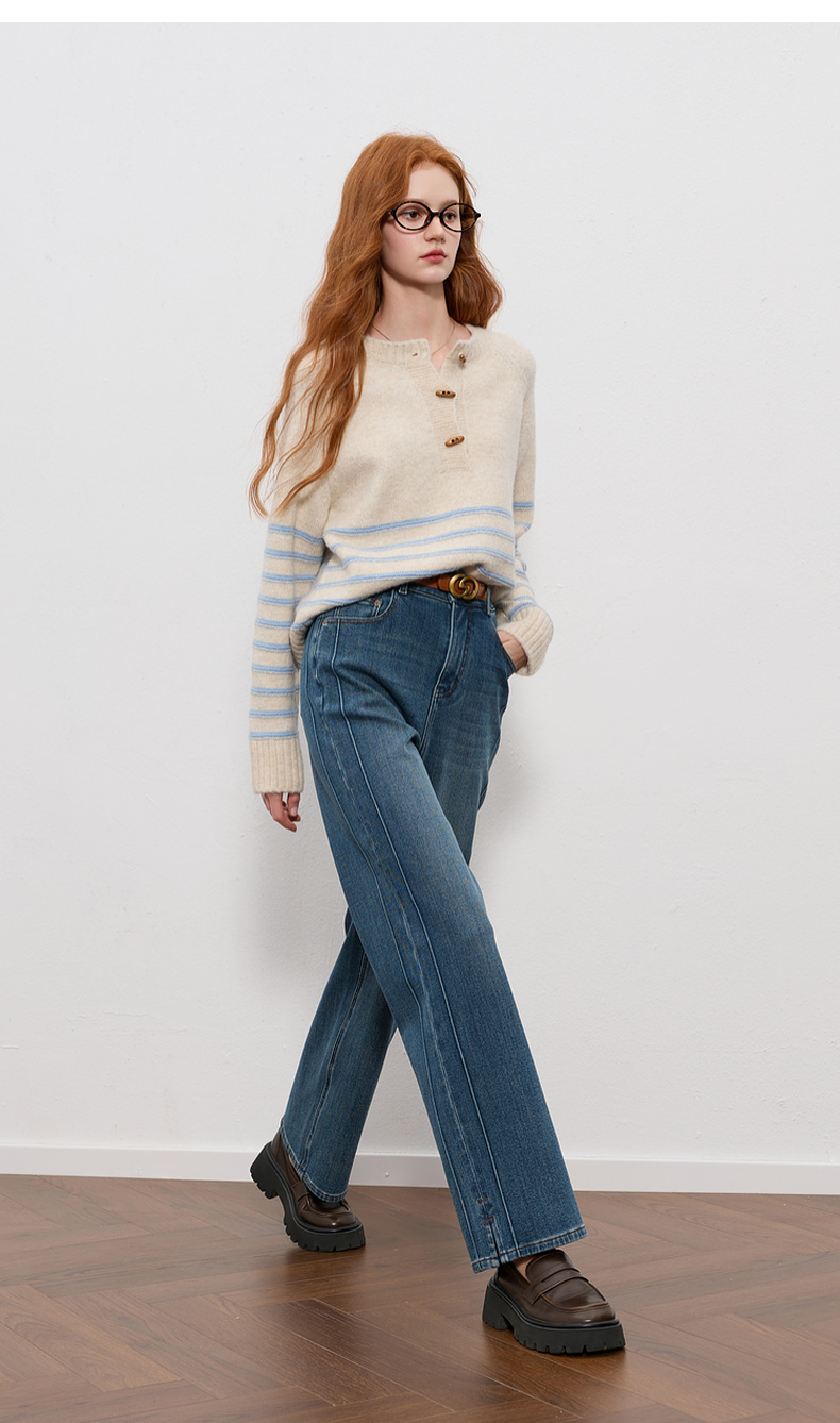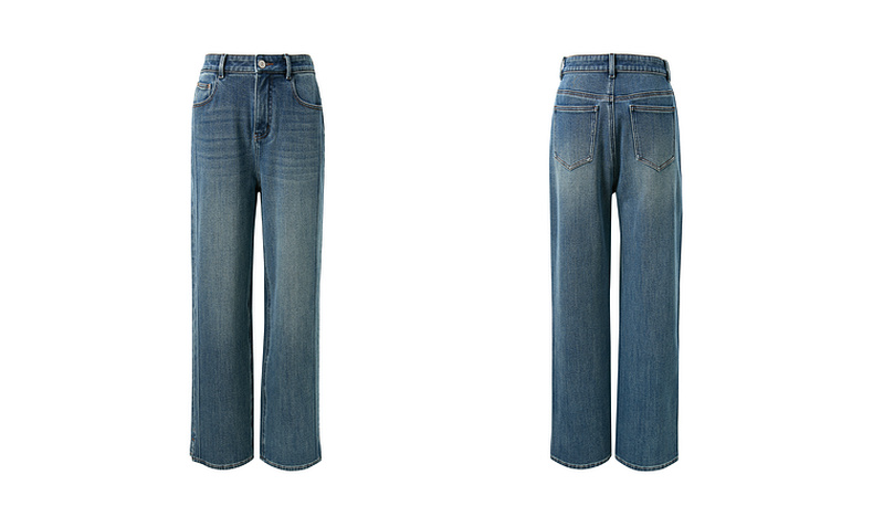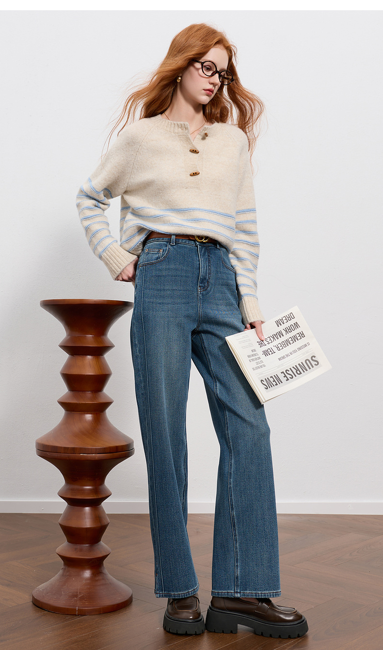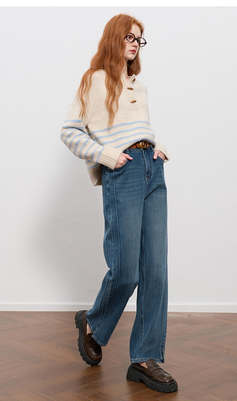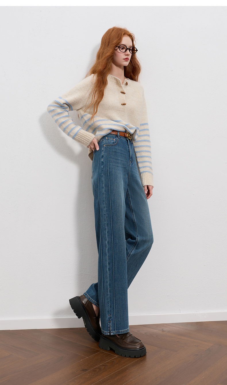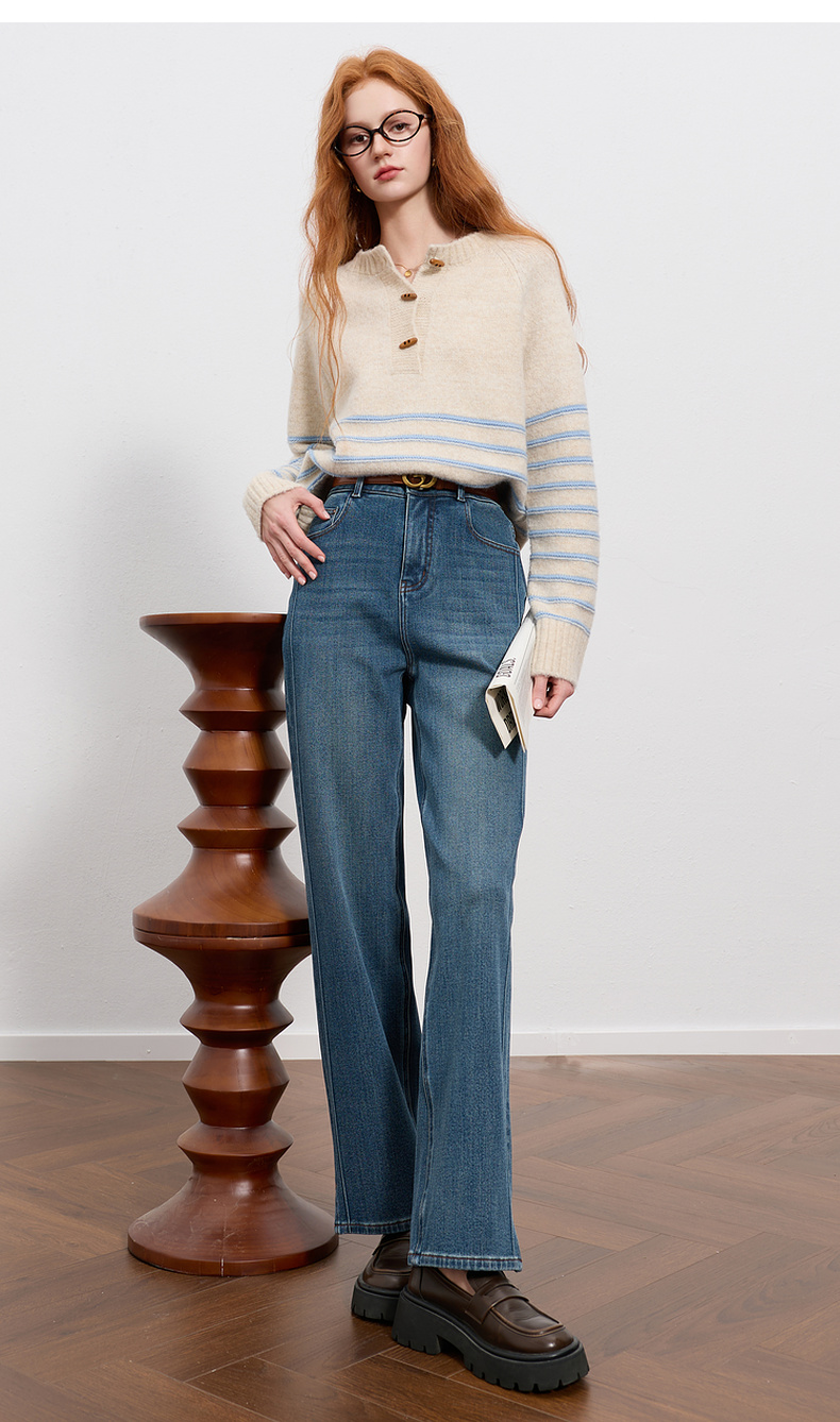三彩2025冬季新款高腰牛仔裤休闲裤一体绒磨毛直筒裤九分裤M