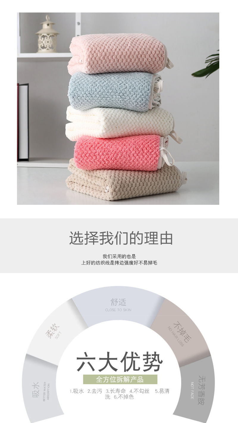 【菠萝格毛巾!送挂钩】吸水毛巾居家日用布艺洗脸巾成人加厚