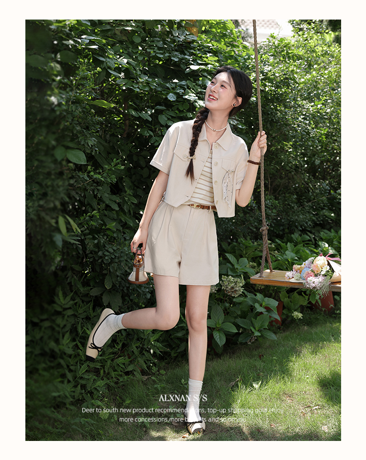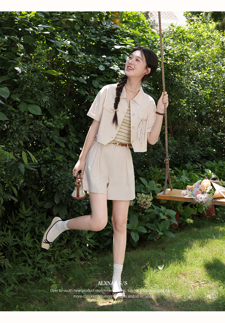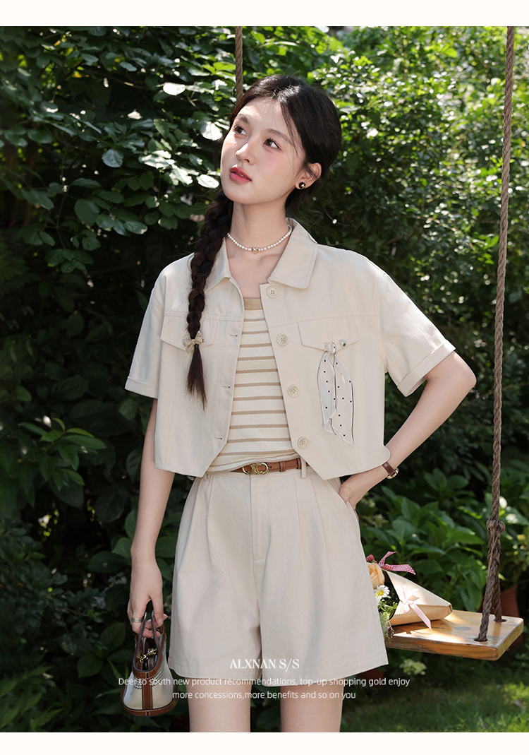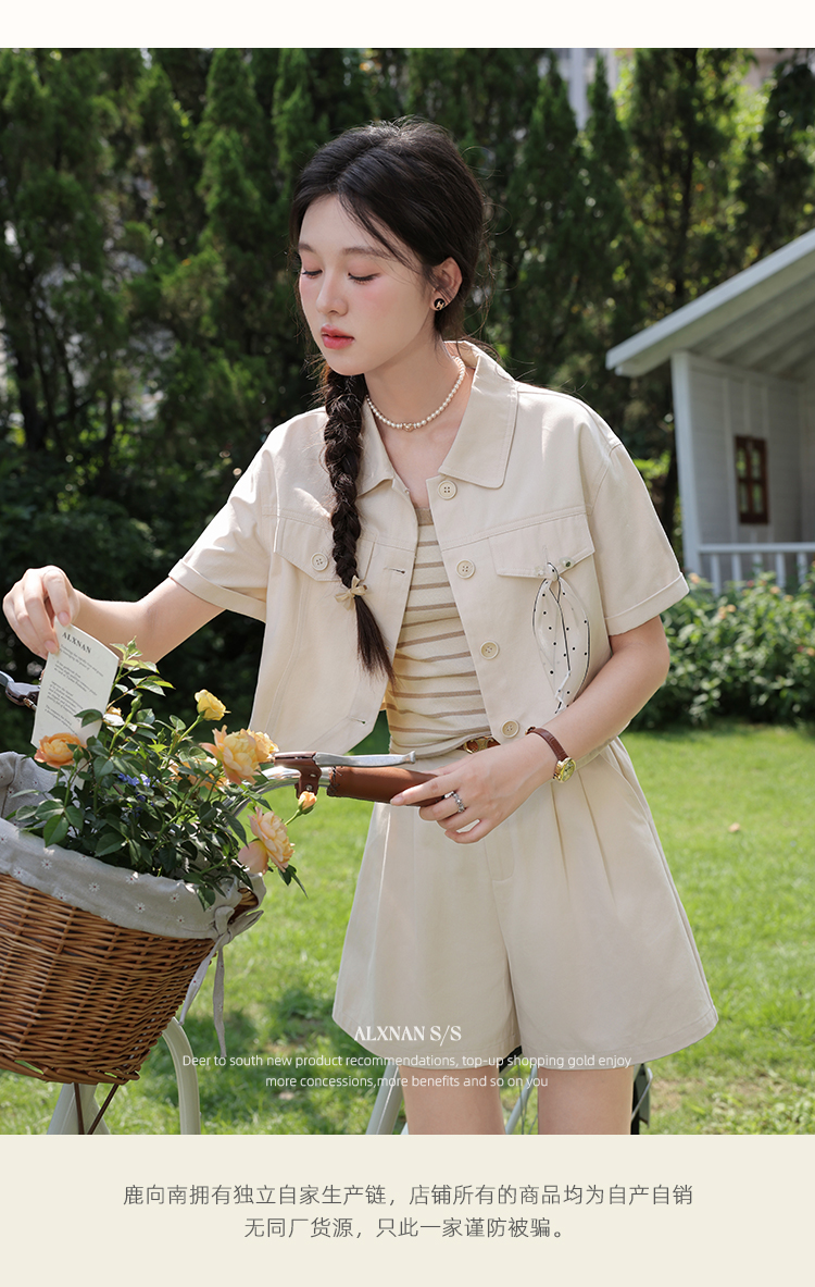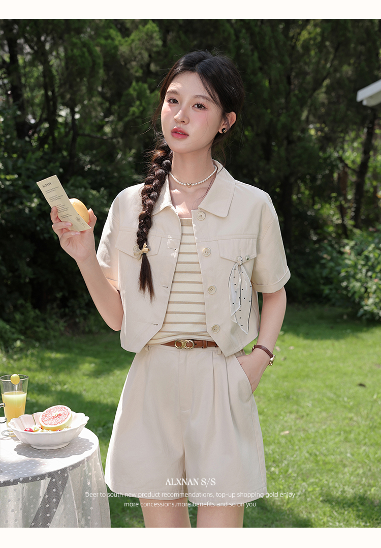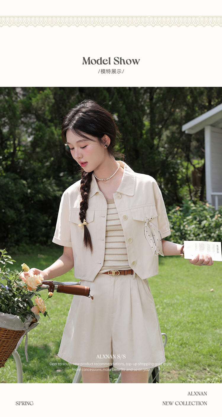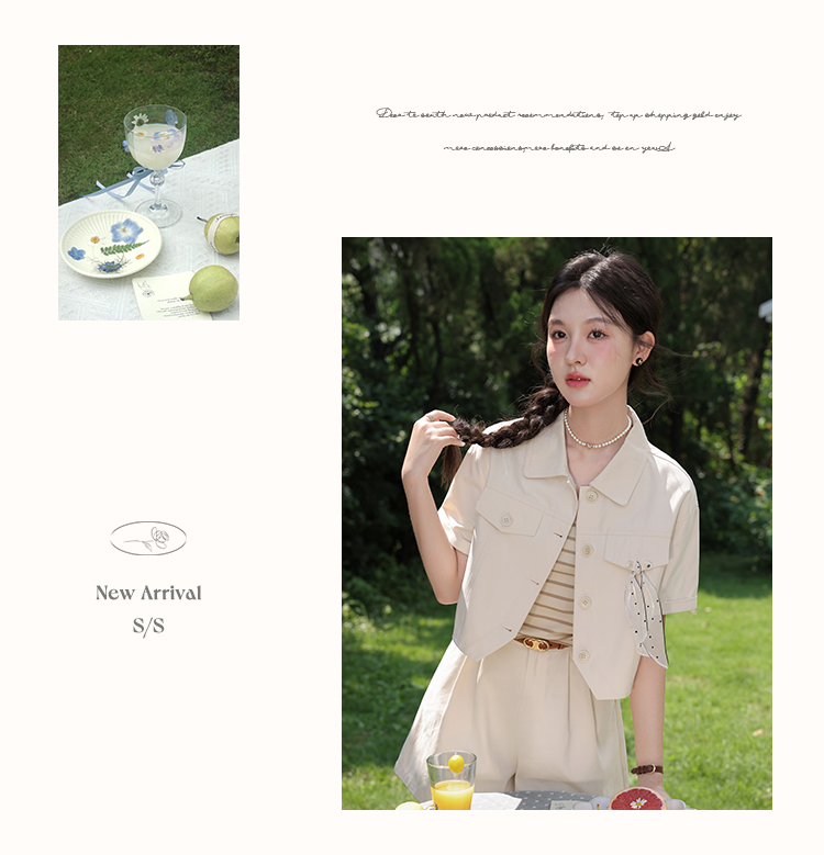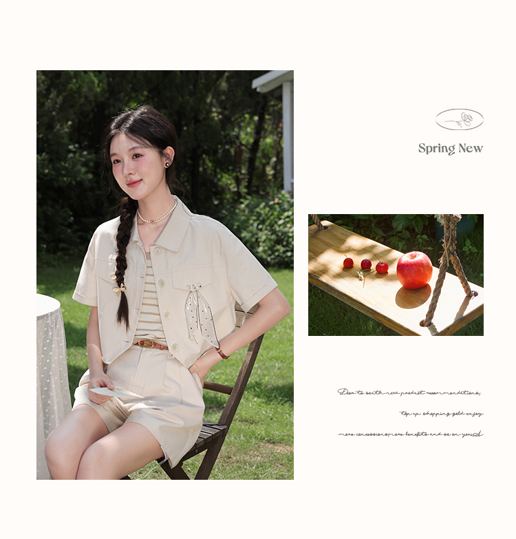 鹿向南「纱之诗笺」米杏色百搭短外套夏季新款时尚外搭短袖上衣女