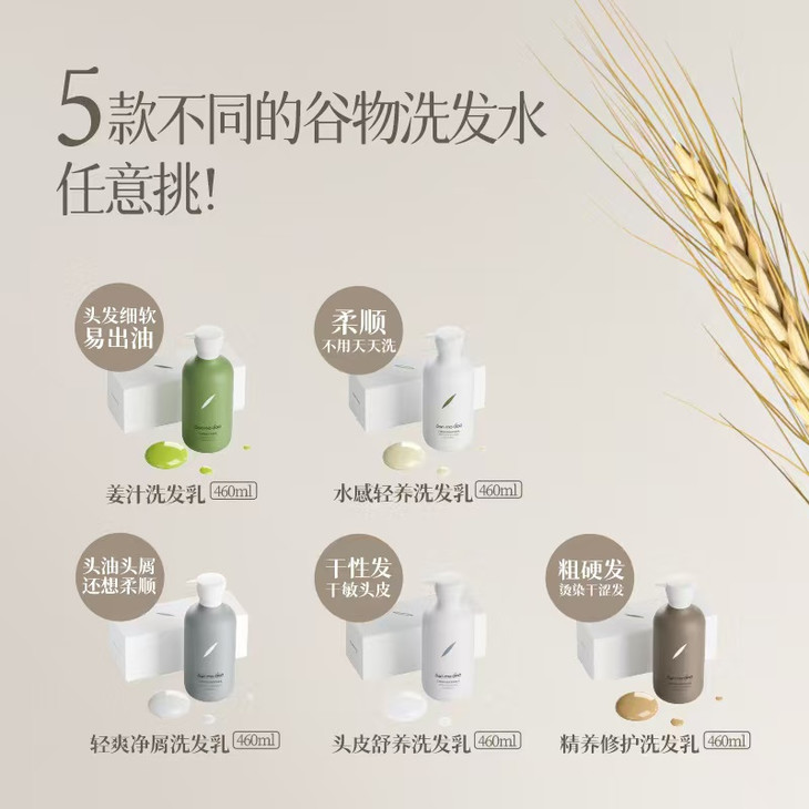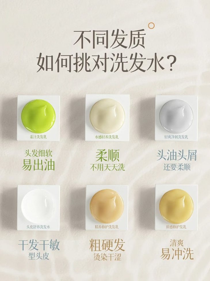 开团5款洗发水可以选择 ☑️精养修护洗发乳—适合烫染脆弱易断发质 ☑️头皮舒养洗发水—适合敏感头皮干涩发质 ☑️姜汁洗发乳—适合男生头油易脱落,女生细软塌 ☑️水感轻养洗发乳—合适想要柔顺,又要清爽粘腻 ☑️轻爽净屑洗发乳—适合重油头,有头屑 ✌🏻✌🏻建议搭配质感修护发乳(护发素)使用 效果会更好哦~ 十几年根正苗红的国货洗护品牌值得你信赖‼️