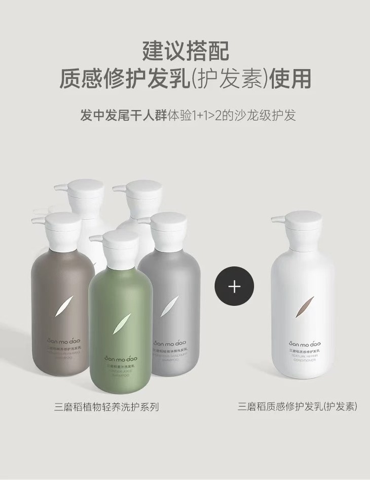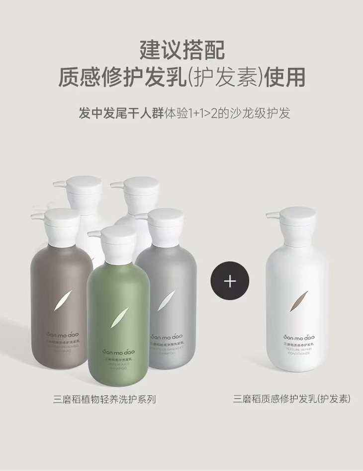 为了针对各类头皮发质问题~ 它家研究了多种洗发水来“对症下药” 精准的针对不同头皮问题和发质情况解决问题👍 👉不管是硬发、一般发、细软发、烫染受损发 还是头发易脱掉、头皮屑严重、干性易敏型头发都能在三磨稻选到合适的那一款!