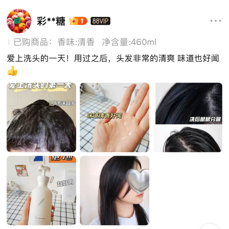 流水好评看的眼精都花了哈哈哈~ 总之,洗发交给它放100个心!