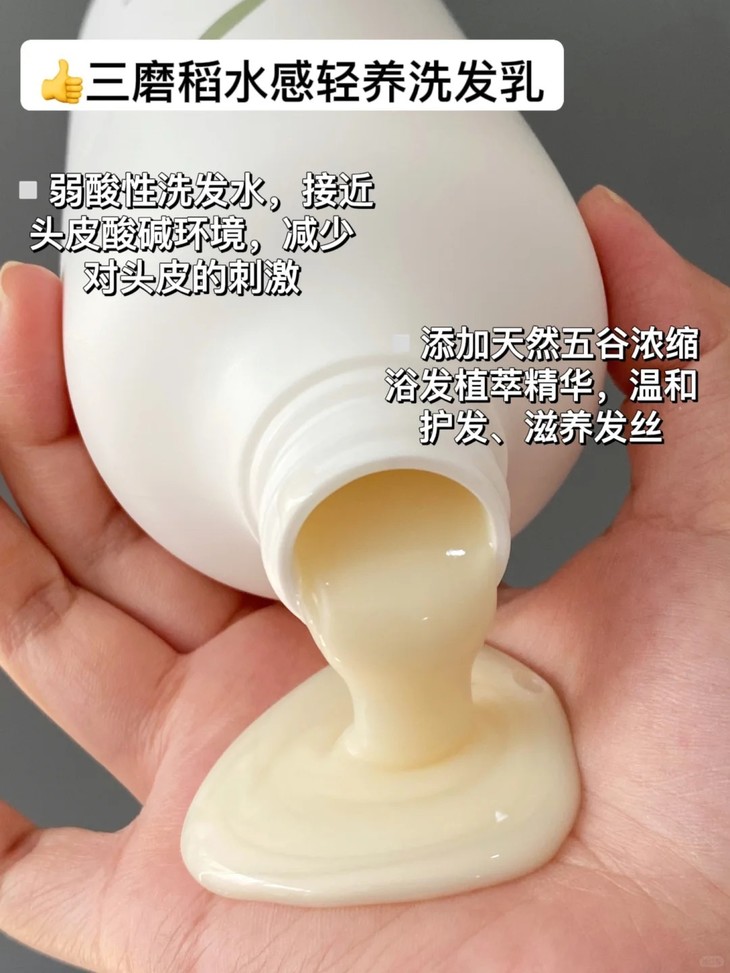 你的头发是不是这样?👇🏻 ❌头顶出油贴头皮 ❌发尾干枯毛躁爱炸毛 而【三磨稻水感轻养洗发乳】 内含稻糠油、稻米发酵原液、小麦胚芽提取物等五谷精粹 深层滋养发芯,韧养发丝 香型是雨后赤脚踩在田园泥泞里,混合东方谷物的清香🌿 流动的珠光奶昔质地,一泵即可揉搓出绵密泡沫 弱酸性的它更贴近头皮环境 温和清洁头皮🧼 抚平炸毛,蓬松发感拿捏,使用感太绝了😍