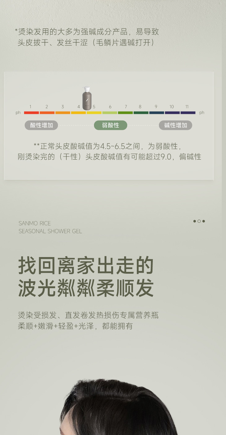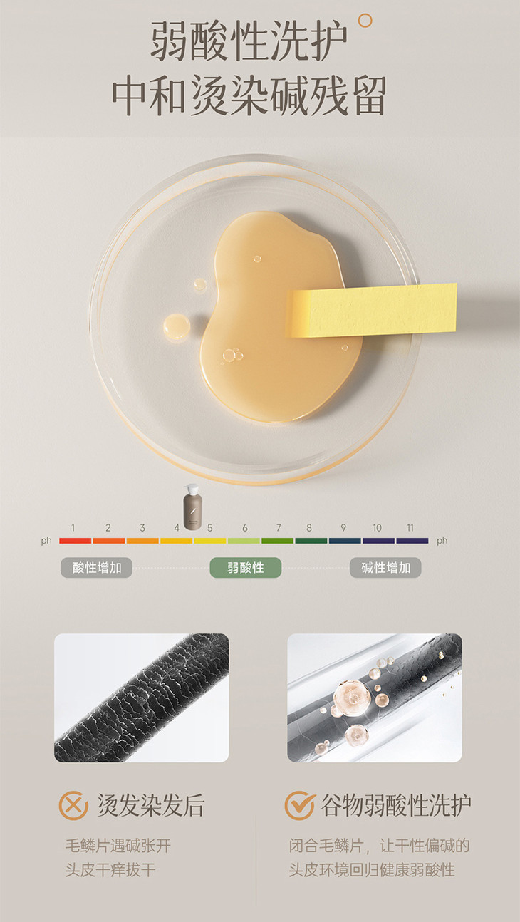 三磨稻谷物洗发水 真正能保养头皮的洗发水‼️ ✔️首先它是pH4.5~5.5的植物弱酸性 油性头皮会偏酸性,干性头皮会偏碱性 而正常的头皮是偏弱酸性的 所以三磨稻的弱酸性谷物洗发水 洗起来会更亲近、更贴合咱们的头皮环境 不会对头皮造成不适感~ 如果你的头皮是偏酸或偏碱的 它也能相互中和,让头皮回归原本的弱酸性环境 给头皮一份满当当的呵护感!!