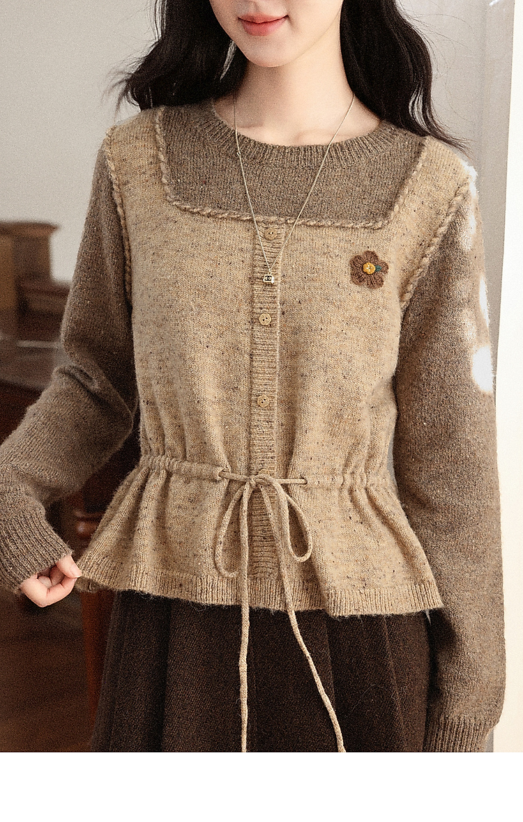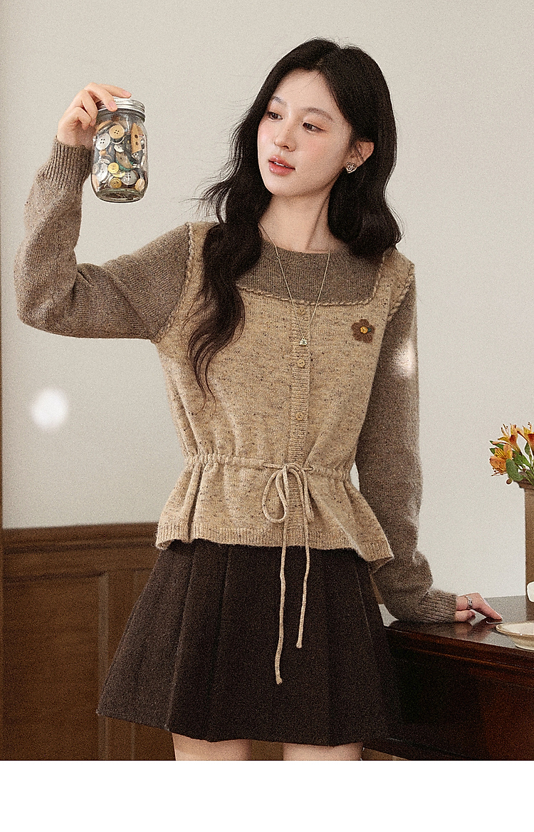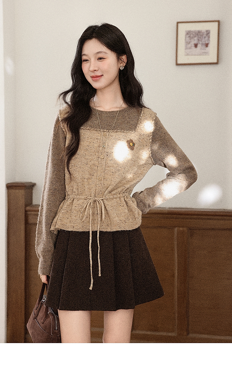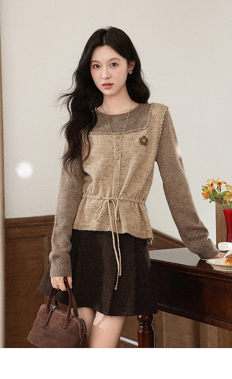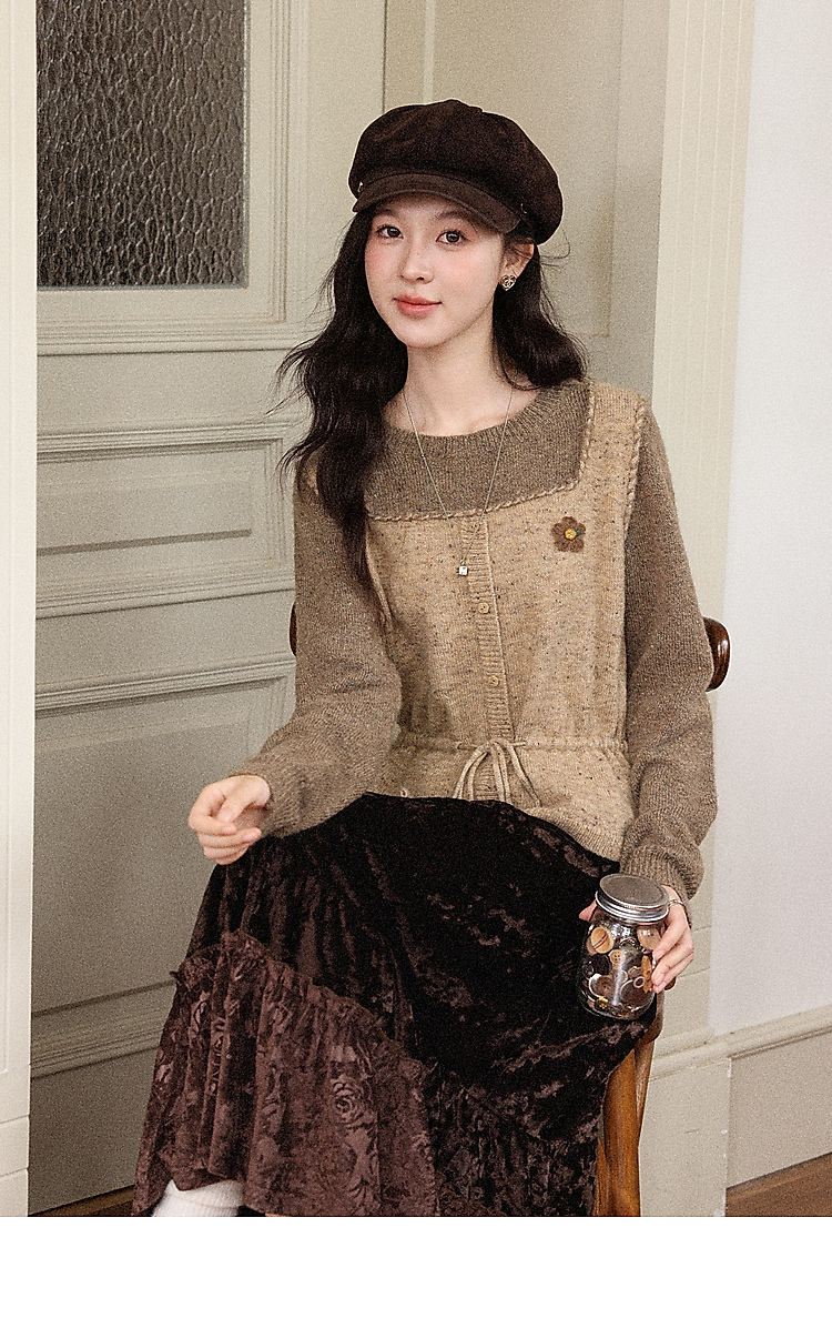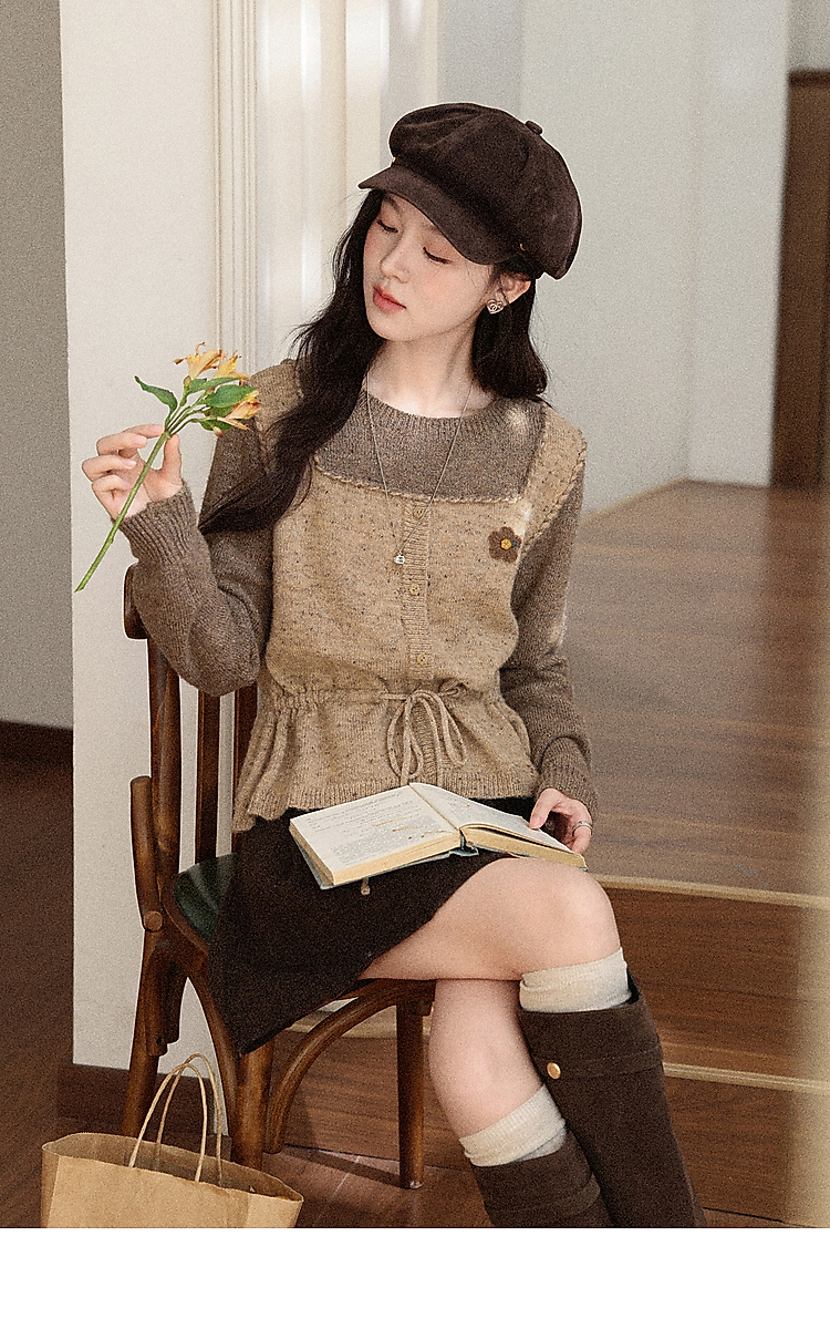 鹿向南「榛果手记」假两件棕色毛衣女秋冬新款洋气高级针织衫上衣