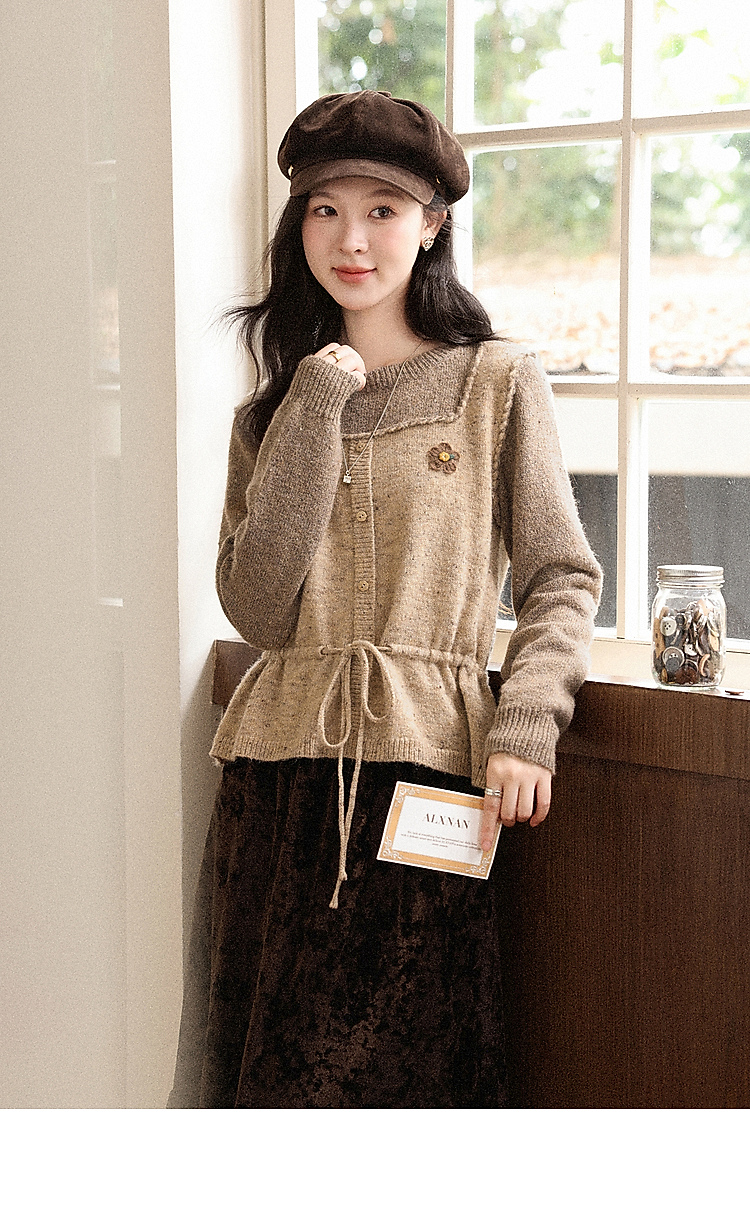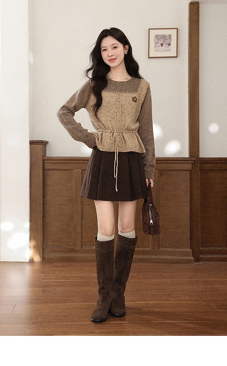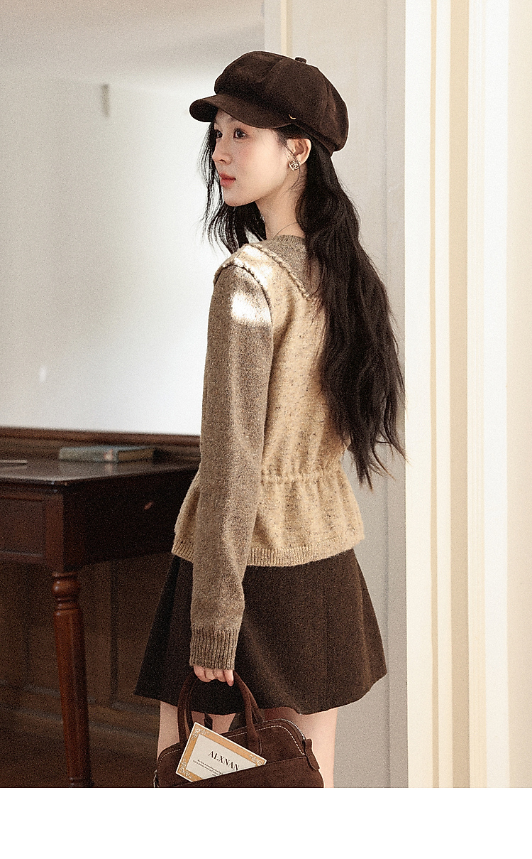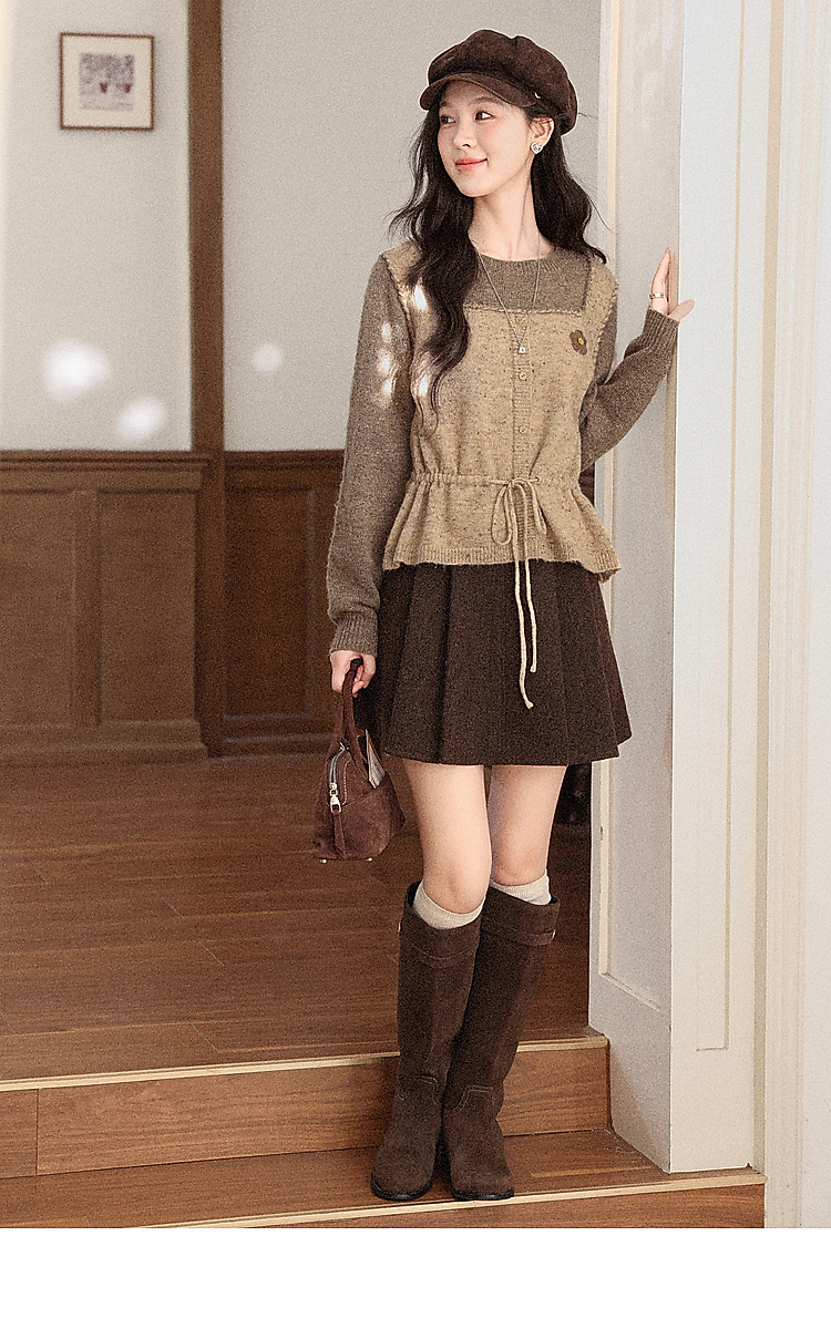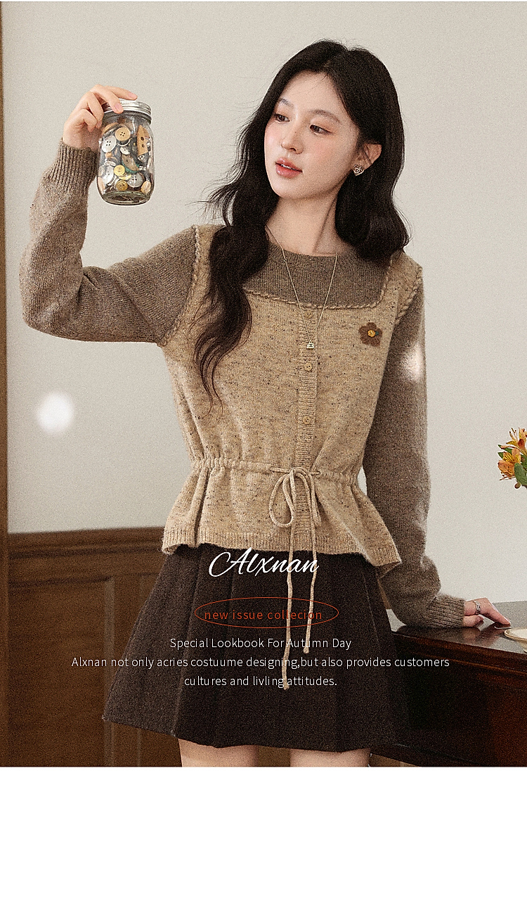 鹿向南「榛果手记」假两件棕色毛衣女秋冬新款洋气高级针织衫上衣