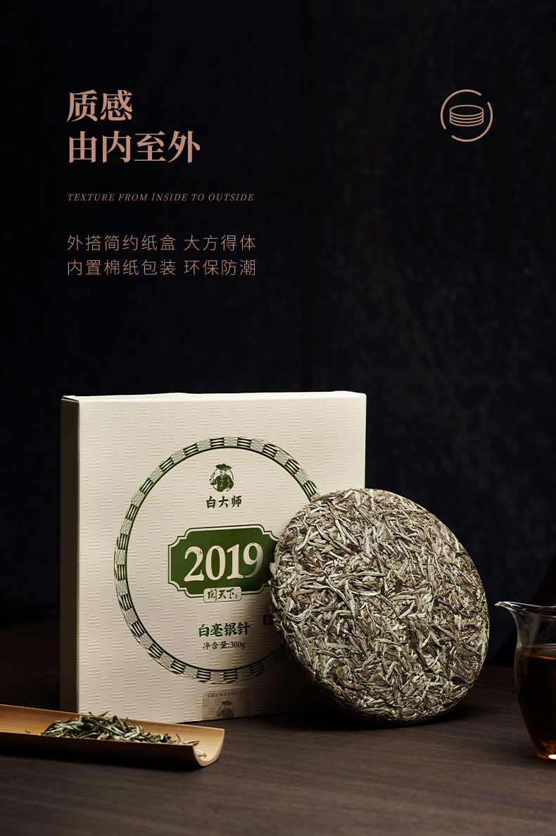 白大师阅天下2019年高山福鼎白茶白毫银针茶叶茶饼典藏礼盒装300g