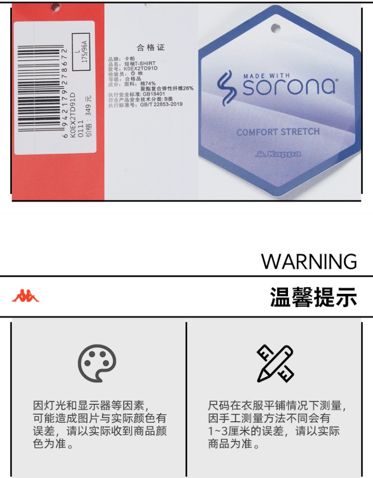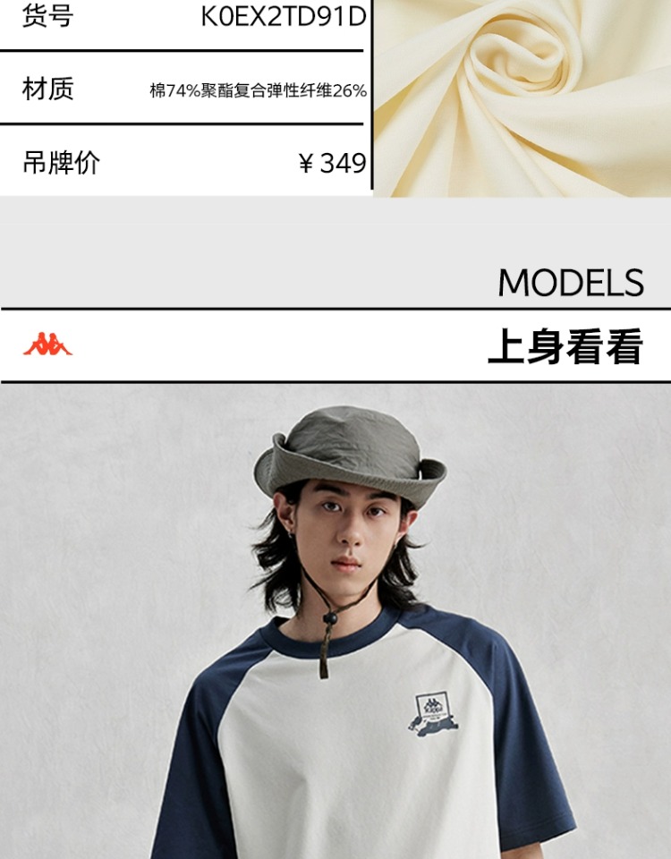 Kappa卡帕短袖2024新款情侣男女夏索罗娜运动休闲T恤撞色半袖K0EX2TD91D
