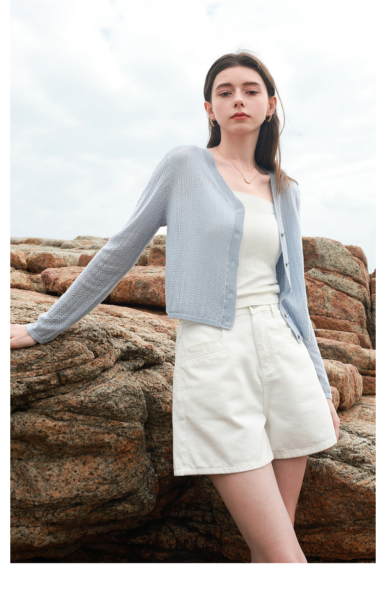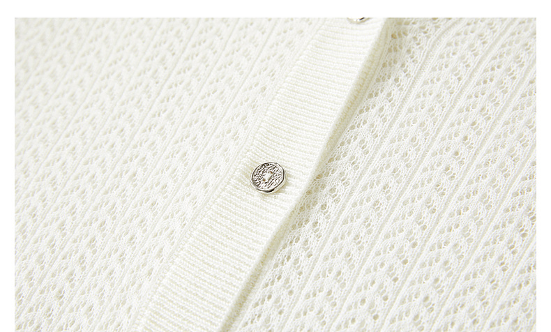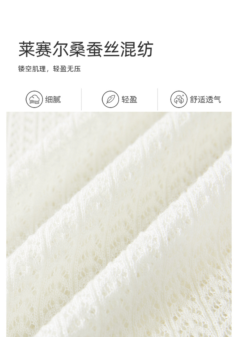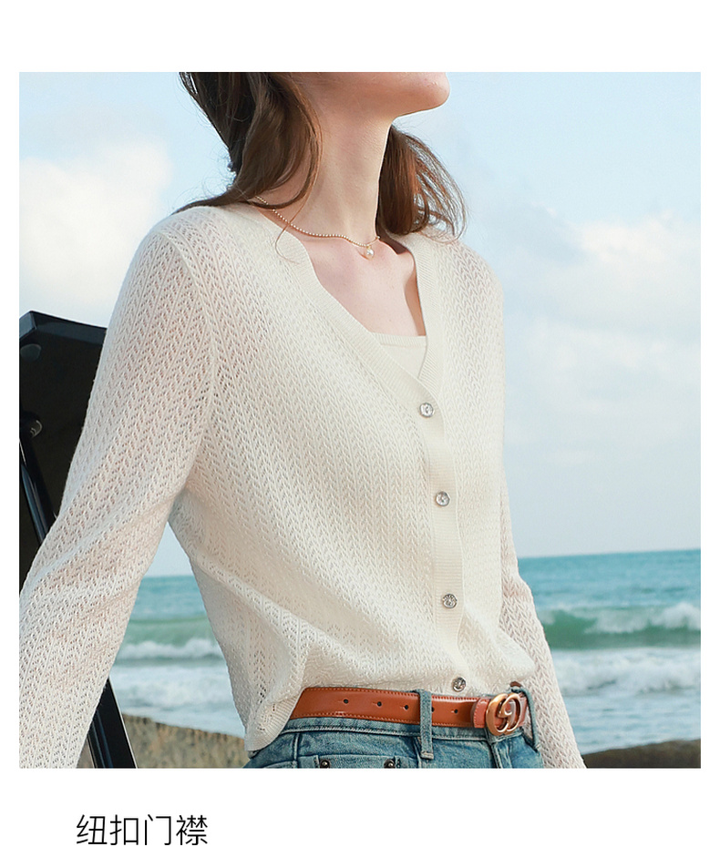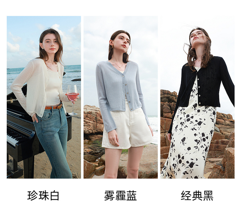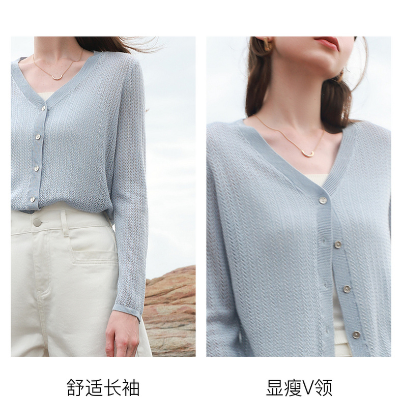 【莱赛尔】三彩2026夏季新款镂空针织衫V领轻薄毛衫外套短款开衫M