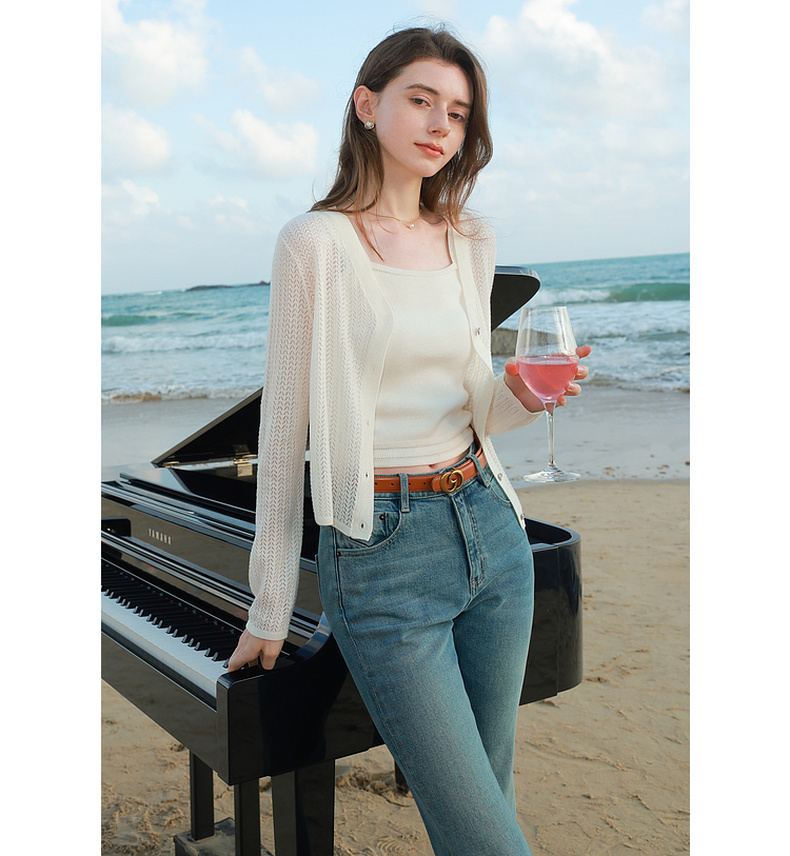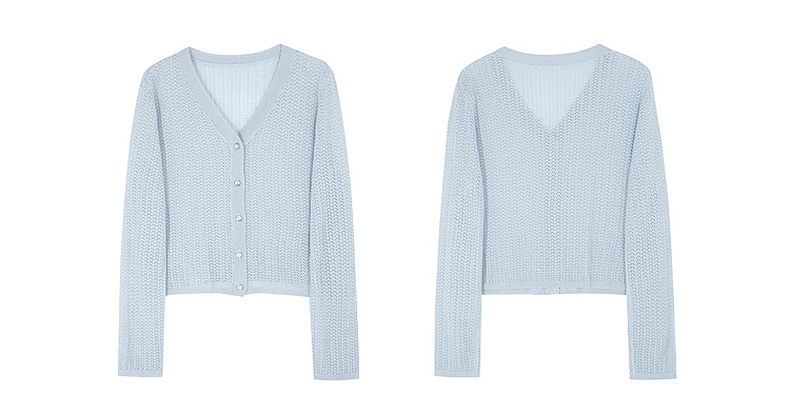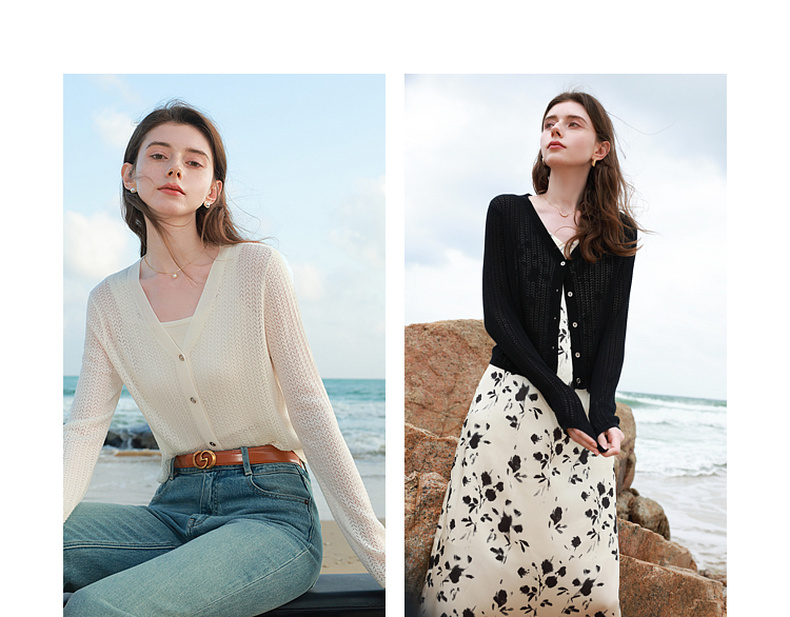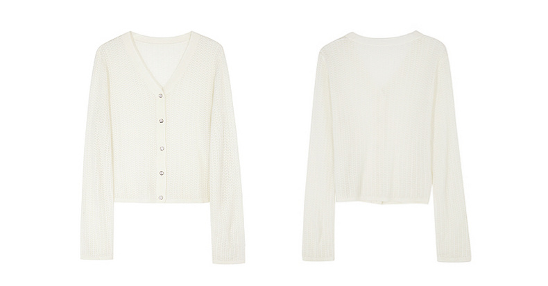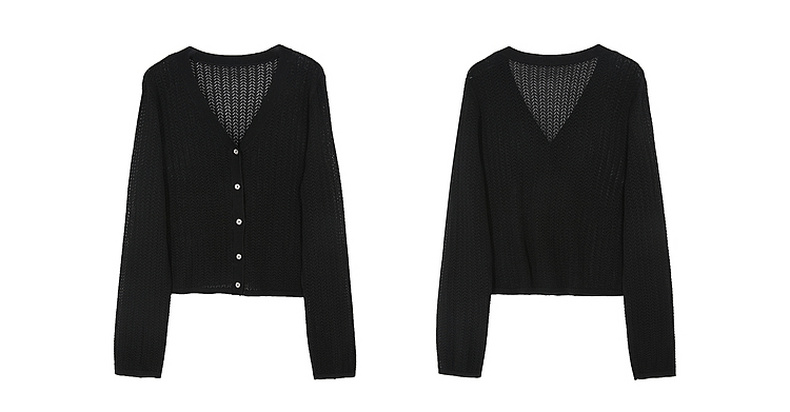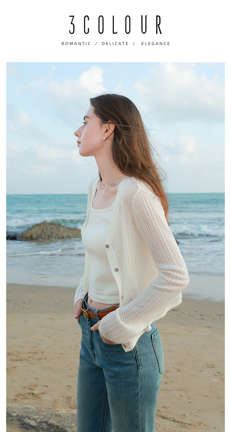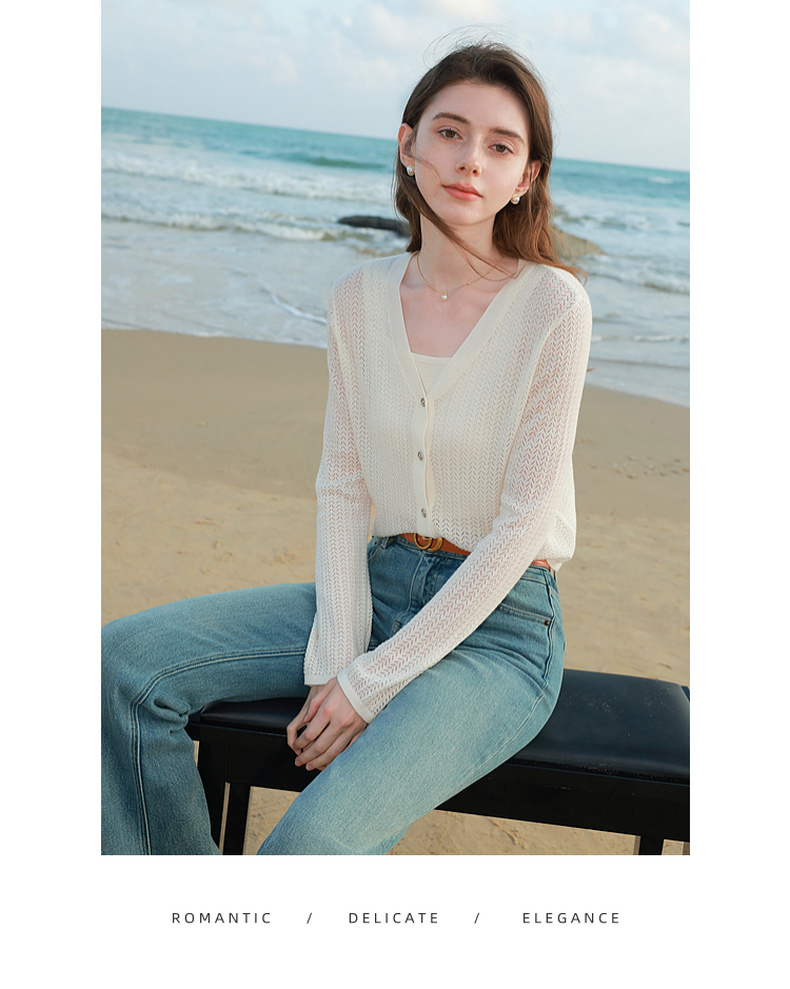 【莱赛尔】三彩2026夏季新款镂空针织衫V领轻薄毛衫外套短款开衫M