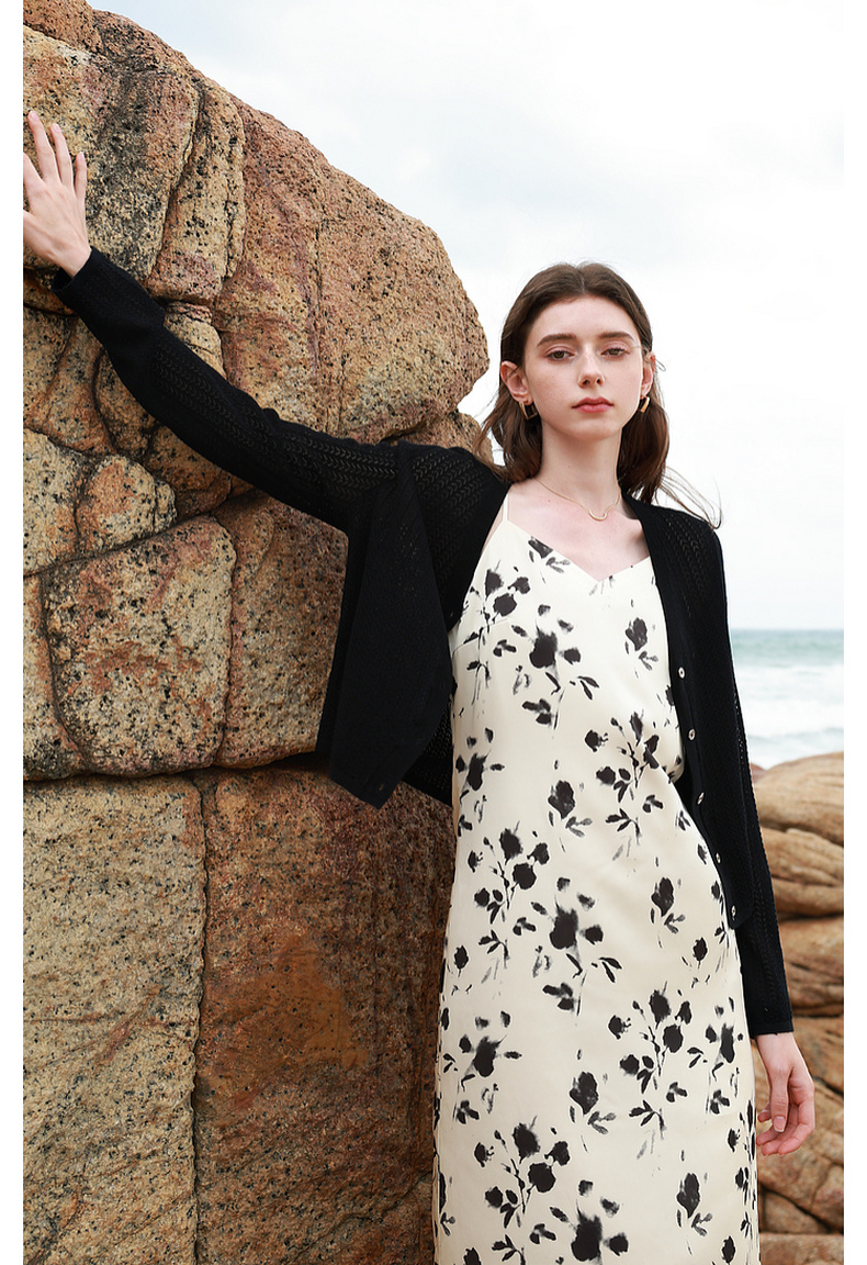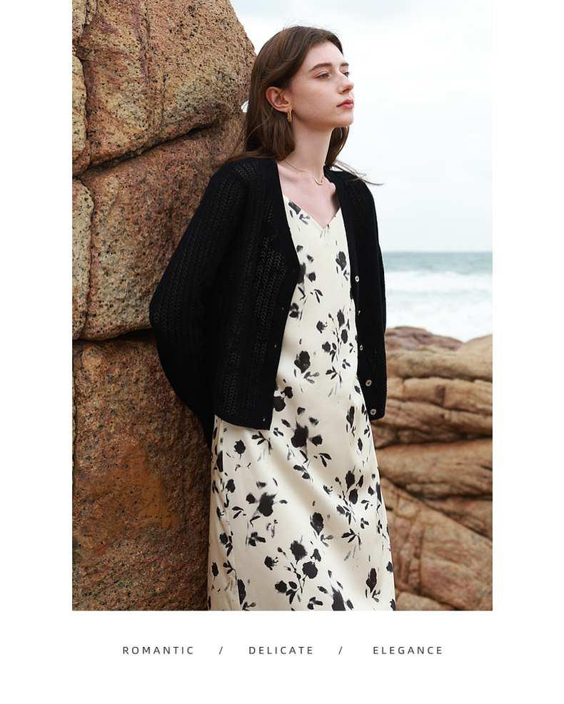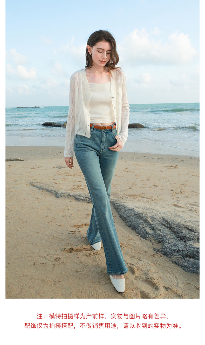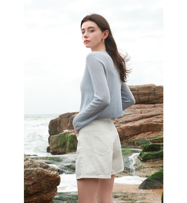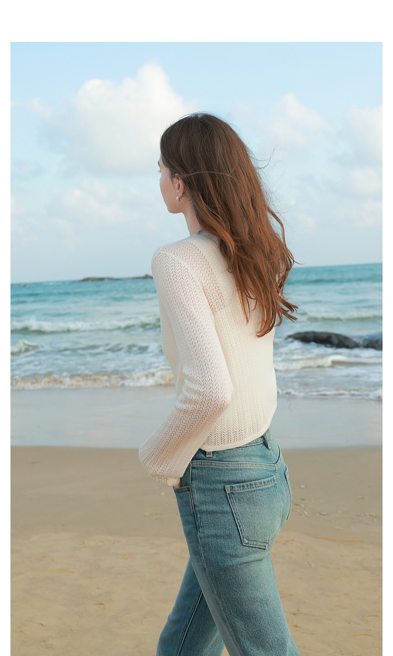 【莱赛尔】三彩2026夏季新款镂空针织衫V领轻薄毛衫外套短款开衫M