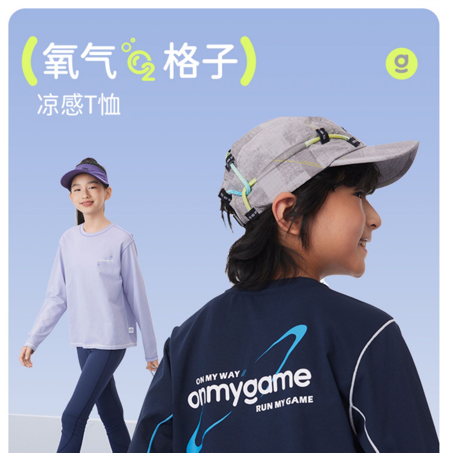 onmygame【氧气格子】男女童凉感长袖T恤2025新上衣春季吸湿排汗