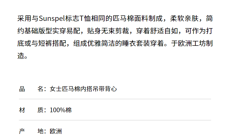 SUNSPEL女士春夏Supima匹马棉吊带背心打底
