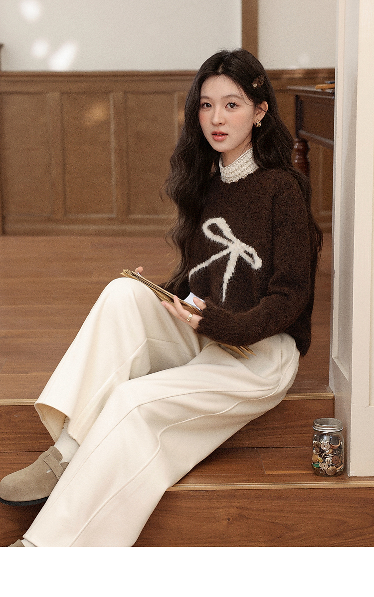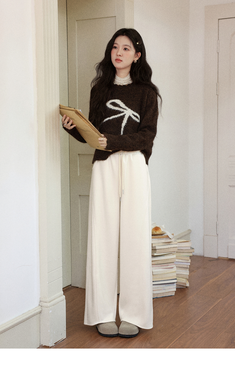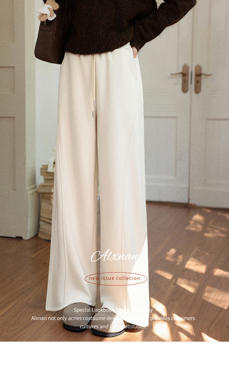 鹿向南「腿精日常」百搭杏色垂感显瘦休闲裤女秋新款直筒阔腿长裤