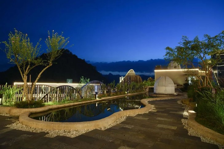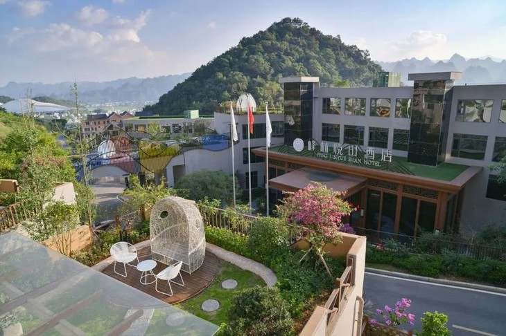 酒店依山而建,像从山体自然生长出的栖息之所。山势为骨,绿植作衣,世界著名设计大师、2015 年米兰世博会总规划师博埃里先生执笔,将山的灵韵与建筑相融,营造庭院式花园意境,一举摘得 “最美庭院式花园酒店” 称号 。
