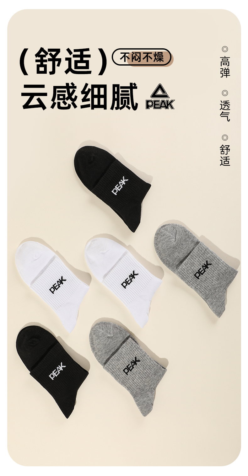 匹克*运动中袜DW343671 黑白灰混色发货(颜色随机)—rxs