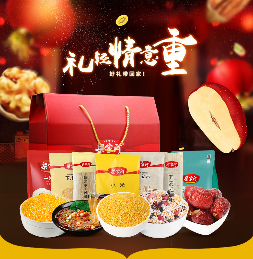陕北梁家河大礼包(黄小米+即食枣+八宝米+玉米仁+粉条+荞麦挂面+苹果干)