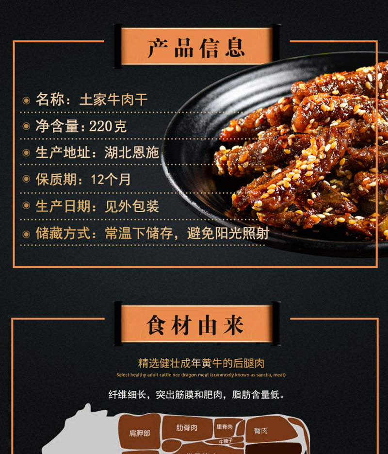土家本色 湖北硒都恩施土家牛肉干手撕即食零食 220g