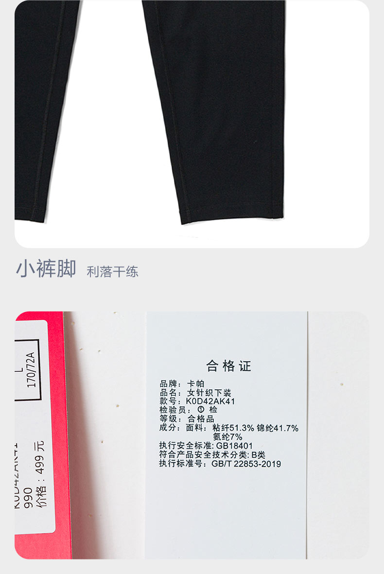 Kappa卡帕运动裤女黑色锥形裤针织长裤休闲裤小脚卫裤K0D42AK41