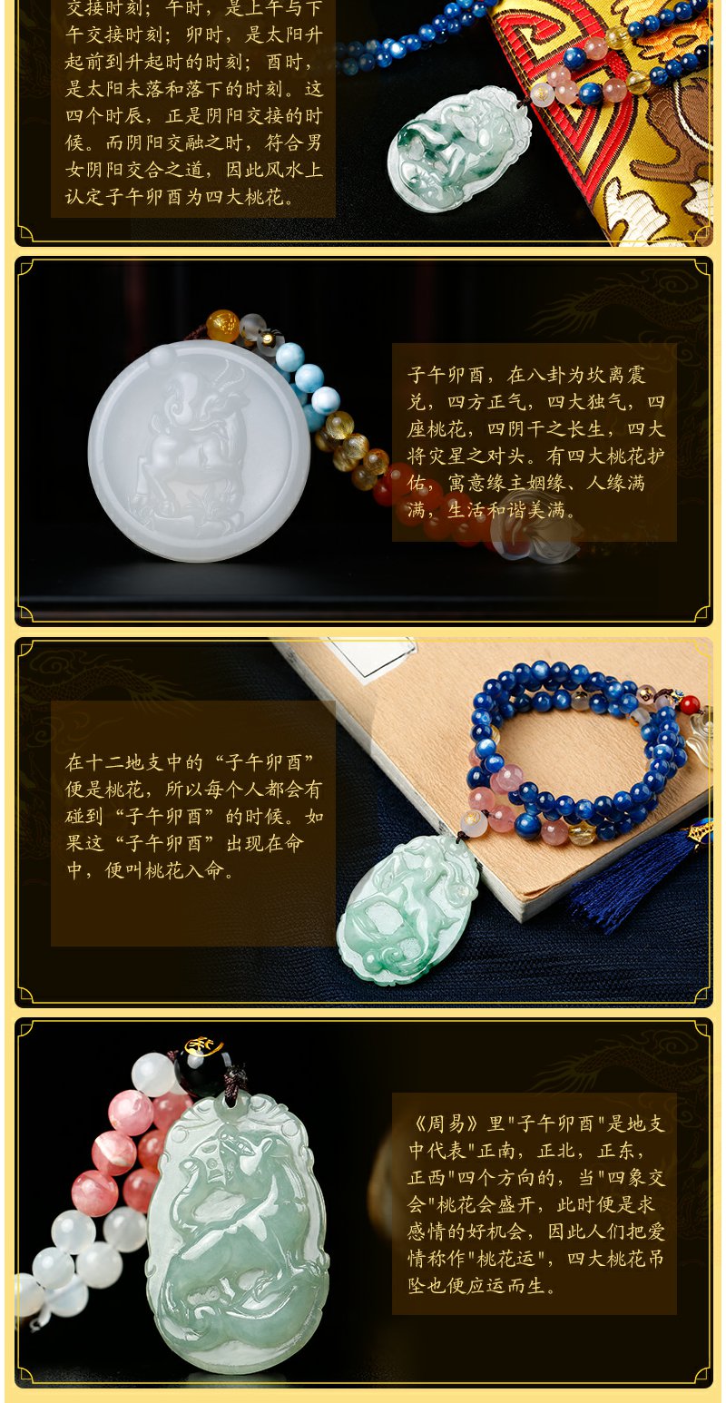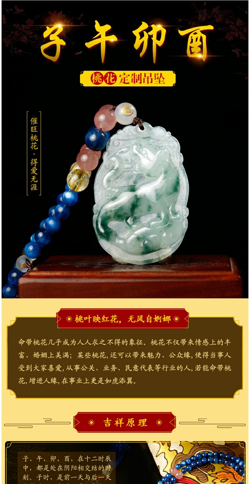 慈元阁子午卯酉生辰五行定制桃花吊坠翡翠牌发晶转运旺财项链